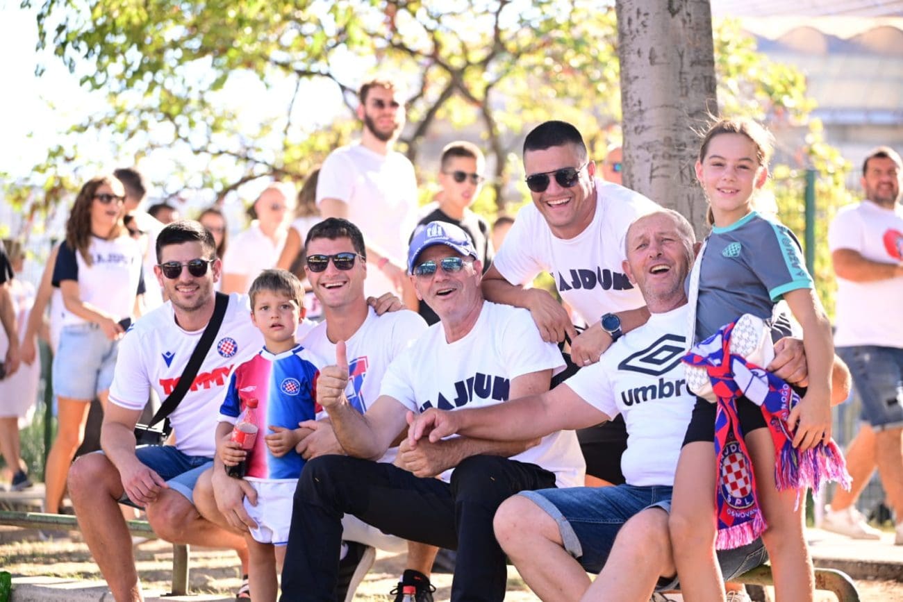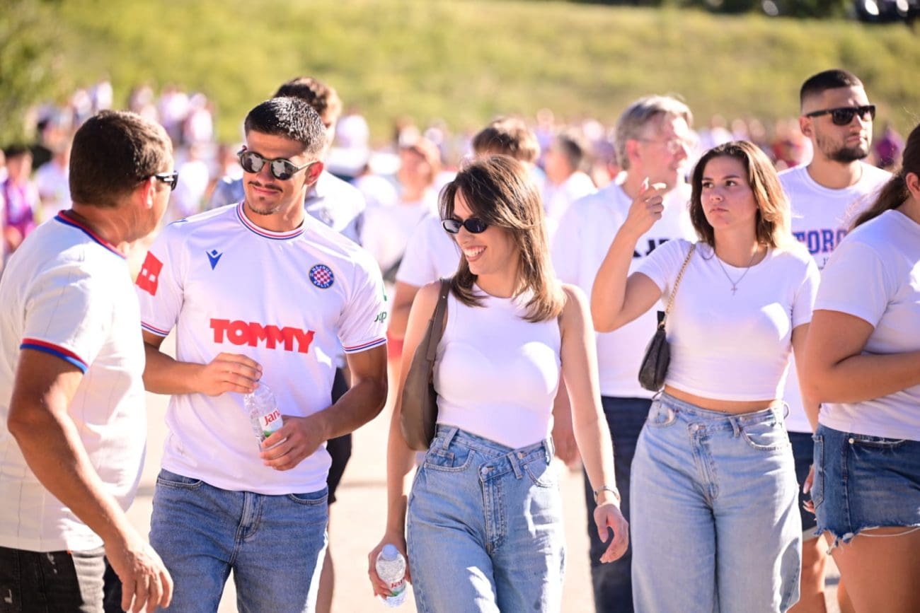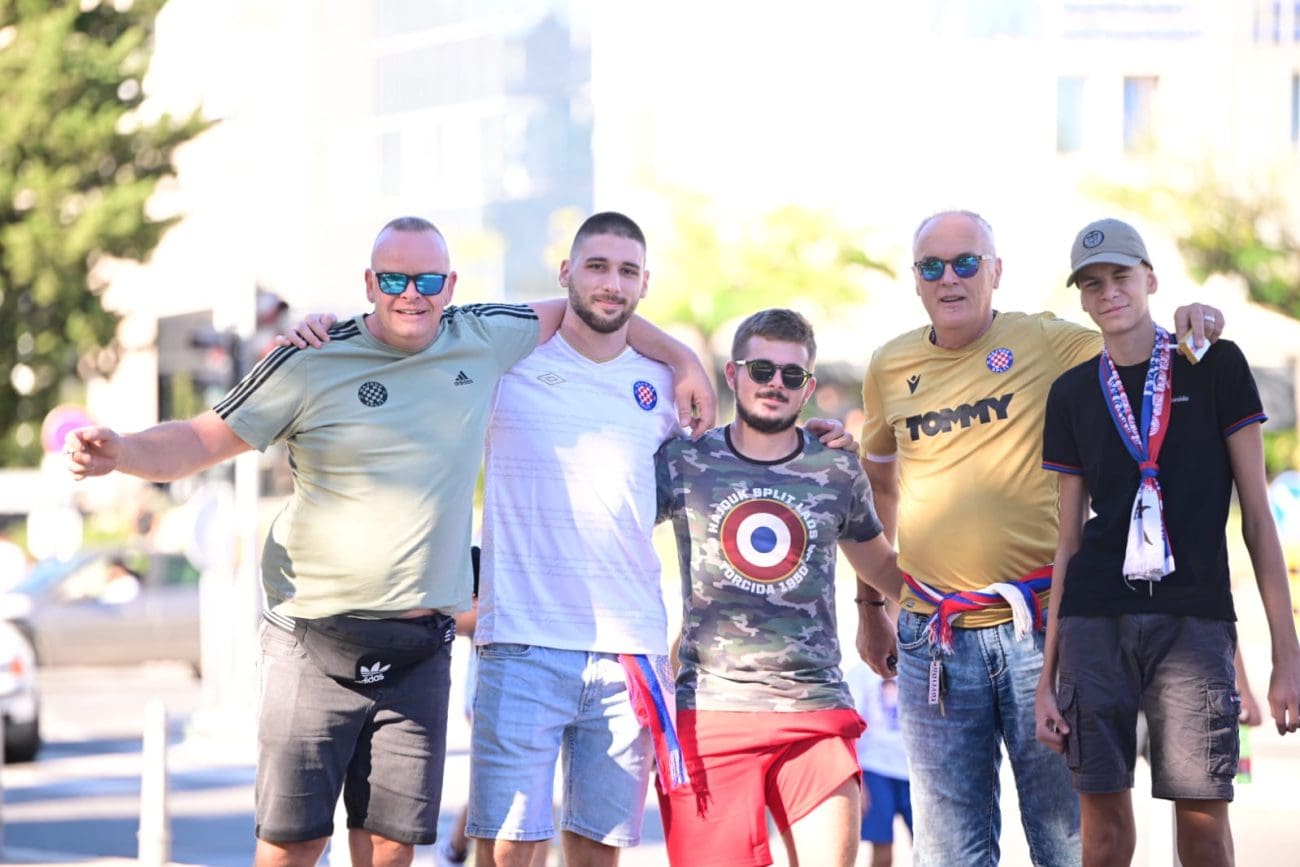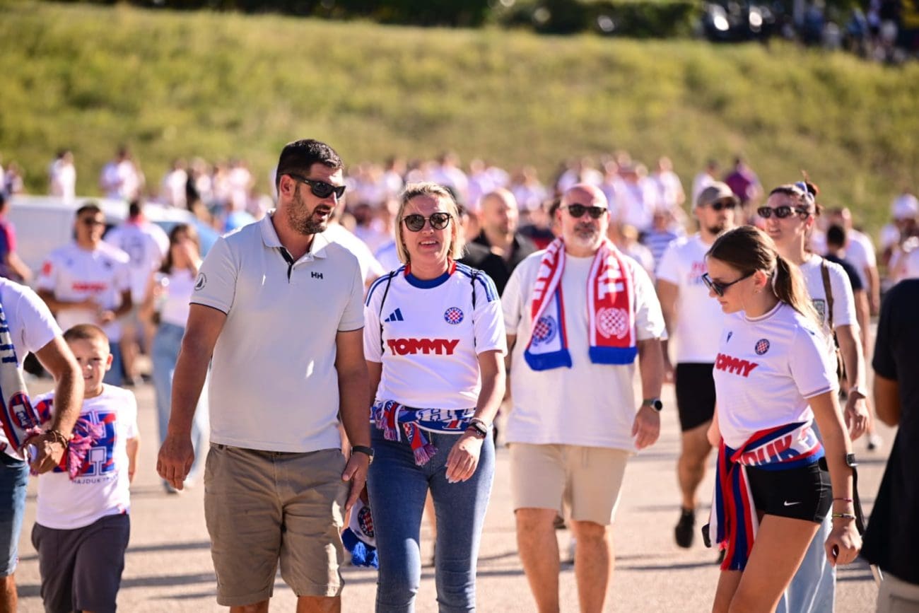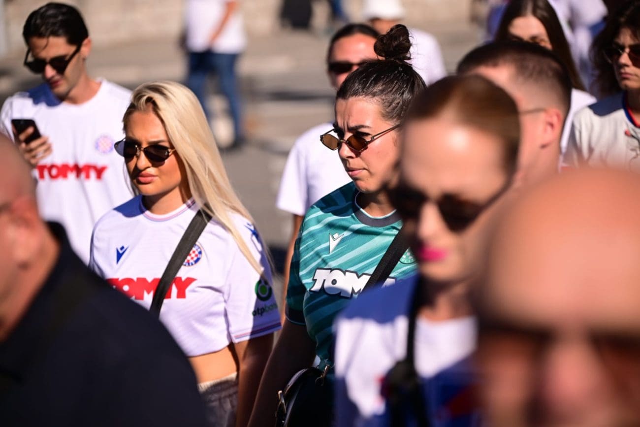 Na tribine i oko stadiona slijeva se šarolika masa – mlado, staro, obitelji s djecom, skupine prijatelja i veterani navijačkih dana. Svi zajedno ujedinjeni u jednoj boji i jednoj želji: bodriti Hajduk do pobjede.