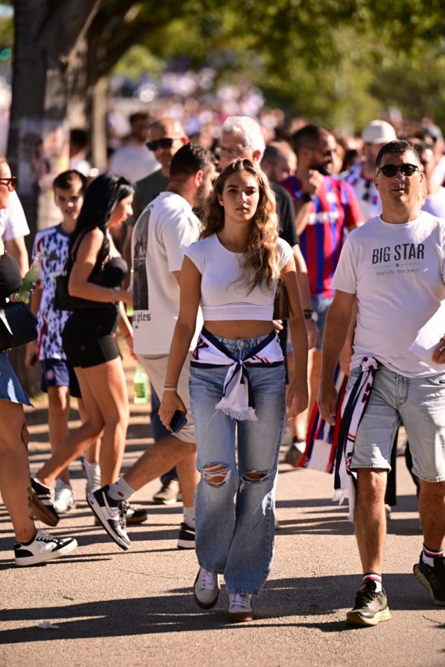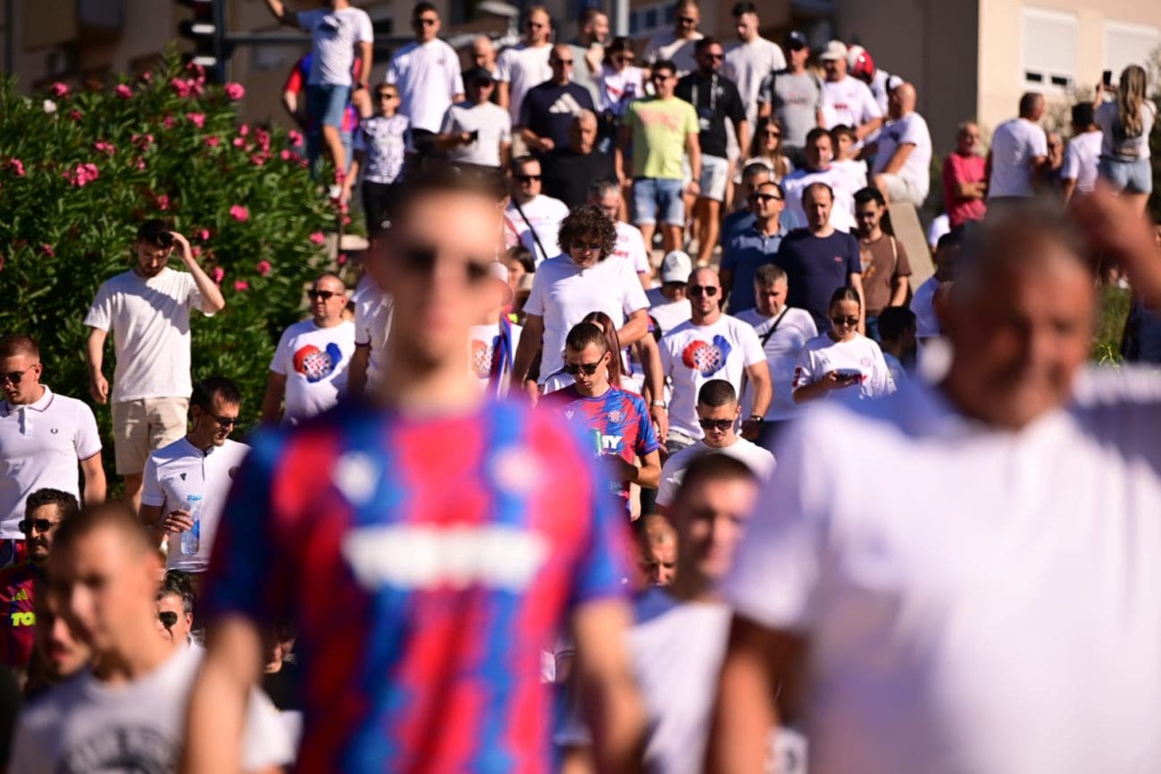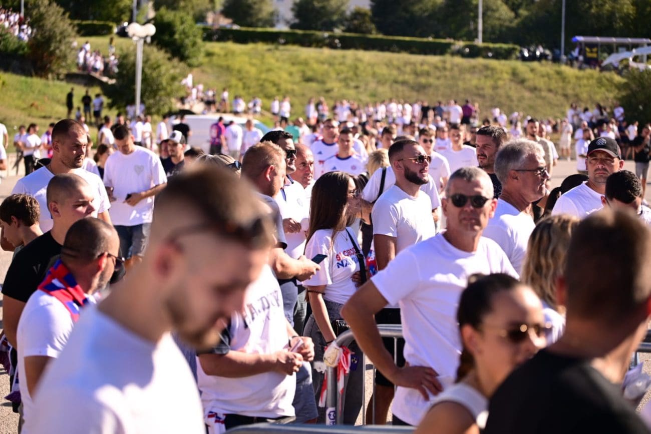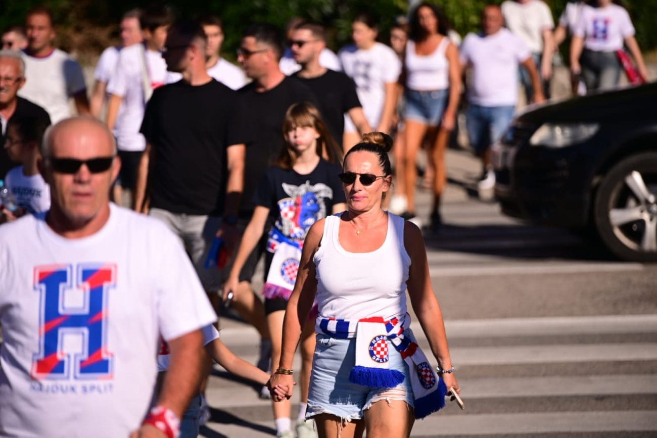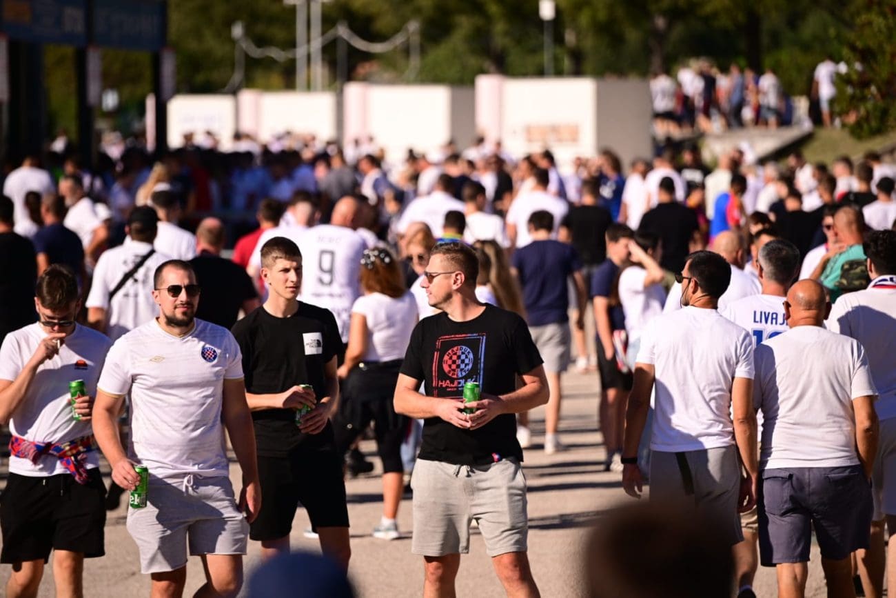 Na tribine i oko stadiona slijeva se šarolika masa – mlado, staro, obitelji s djecom, skupine prijatelja i veterani navijačkih dana. Svi zajedno ujedinjeni u jednoj boji i jednoj želji: bodriti Hajduk do pobjede.