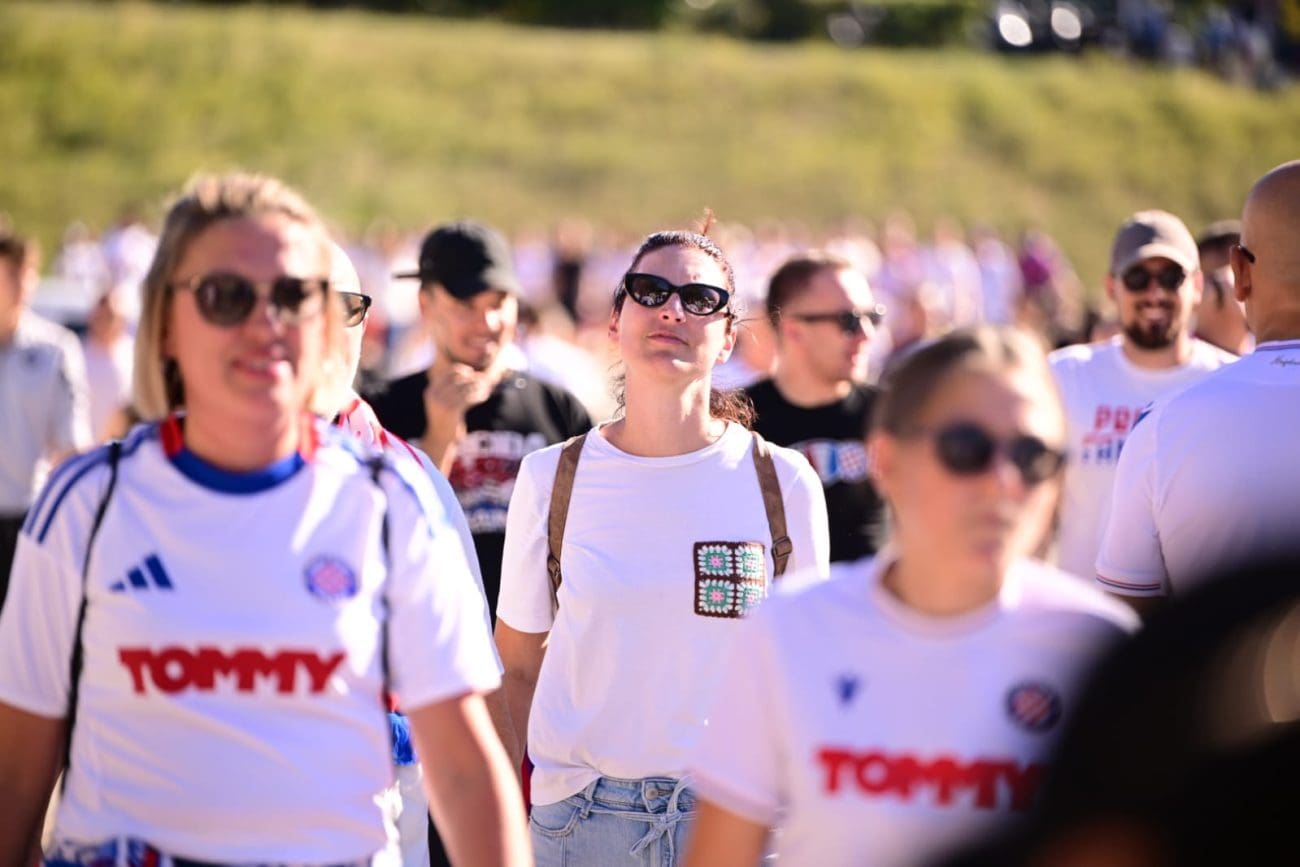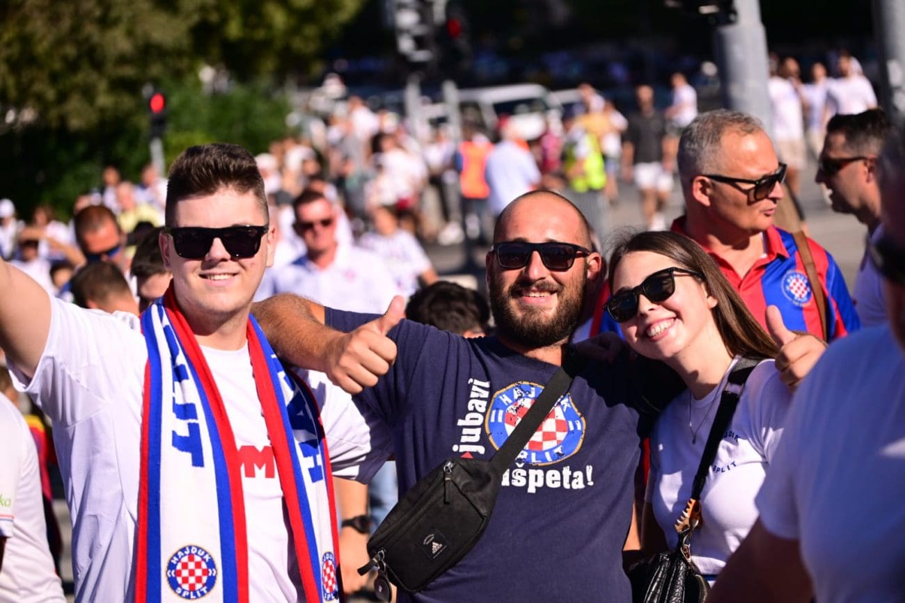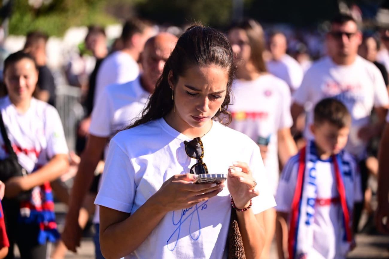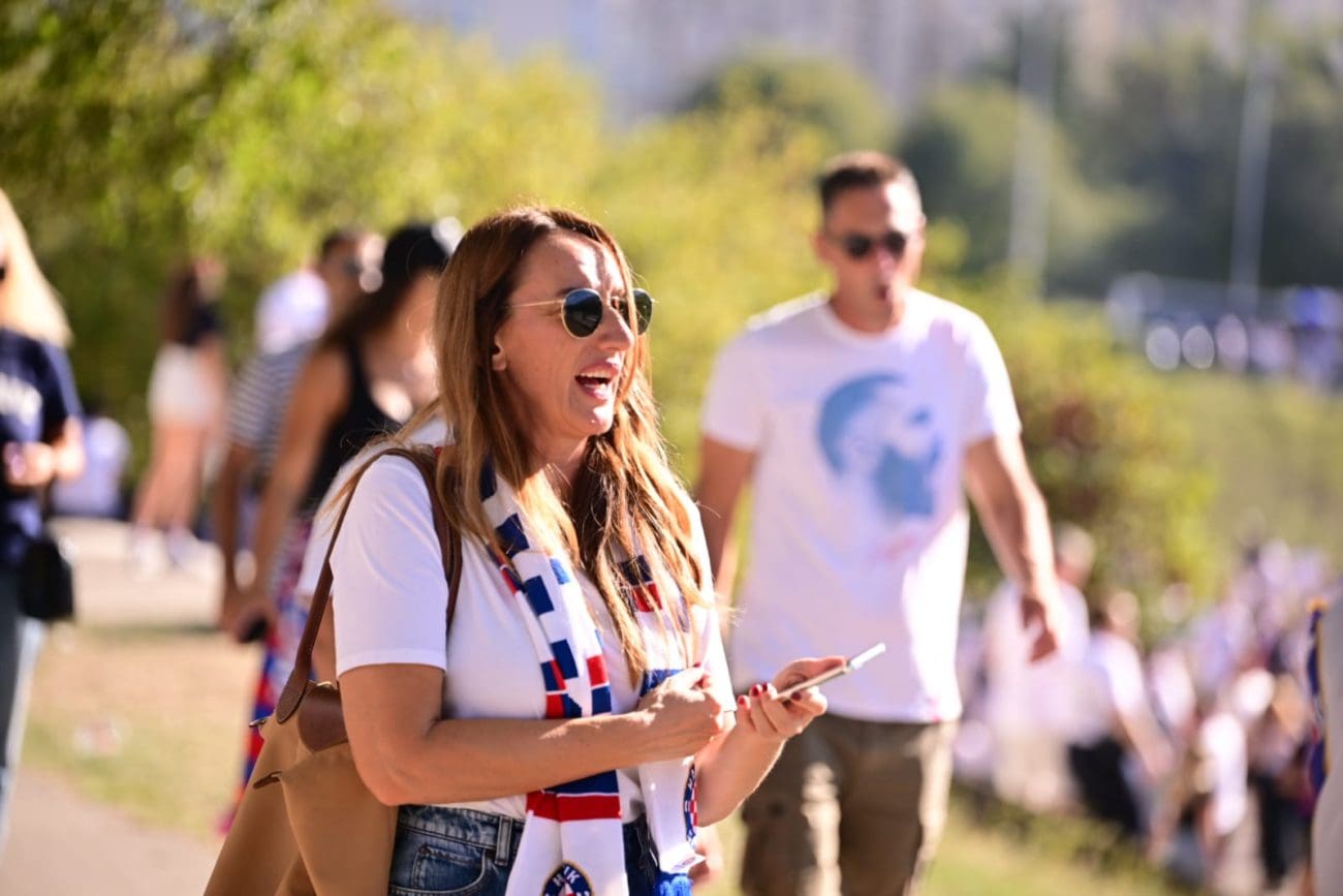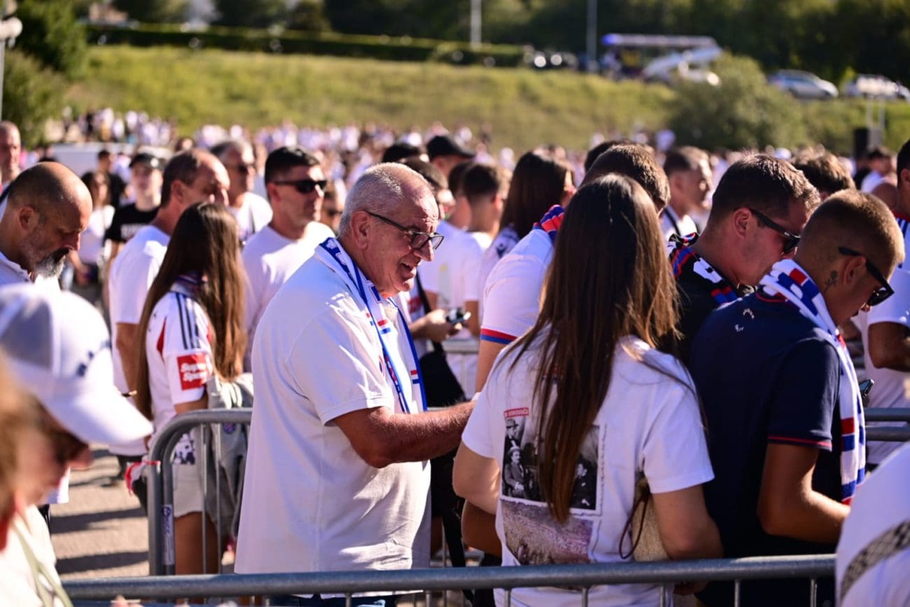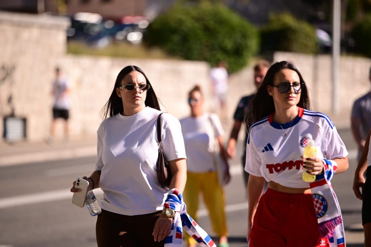 Na tribine i oko stadiona slijeva se šarolika masa – mlado, staro, obitelji s djecom, skupine prijatelja i veterani navijačkih dana. Svi zajedno ujedinjeni u jednoj boji i jednoj želji: bodriti Hajduk do pobjede.