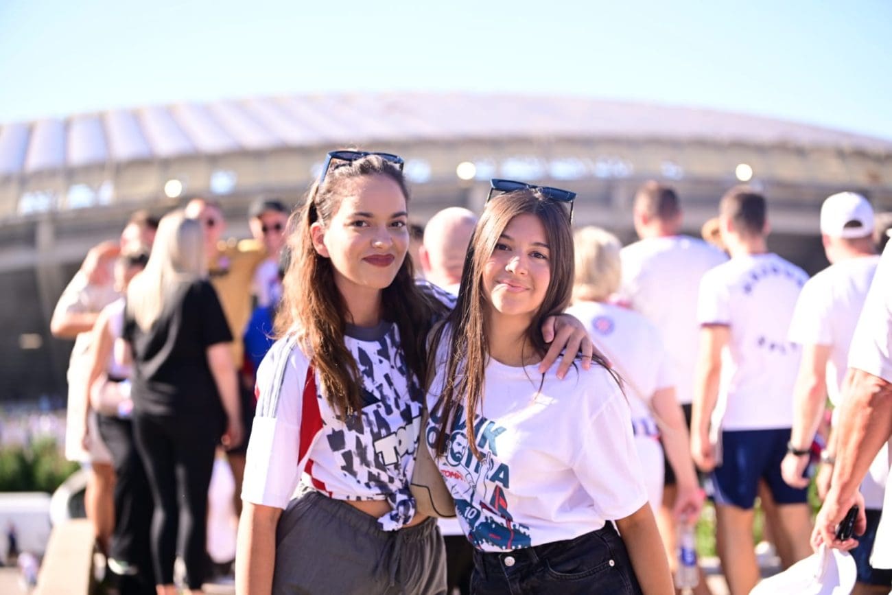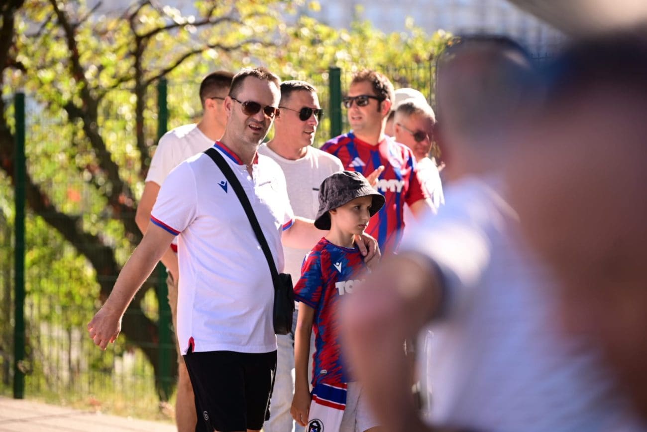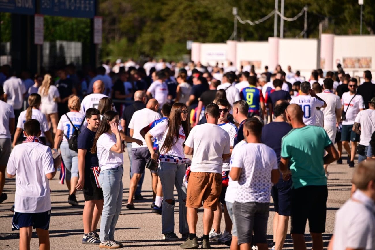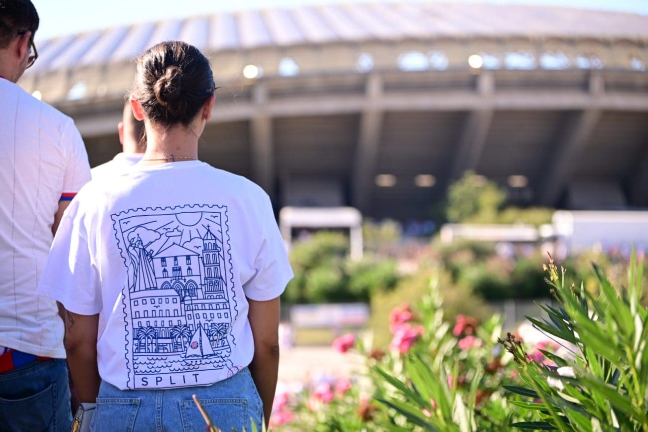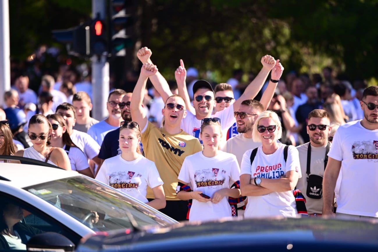 Na tribine i oko stadiona slijeva se šarolika masa – mlado, staro, obitelji s djecom, skupine prijatelja i veterani navijačkih dana. Svi zajedno ujedinjeni u jednoj boji i jednoj želji: bodriti Hajduk do pobjede.