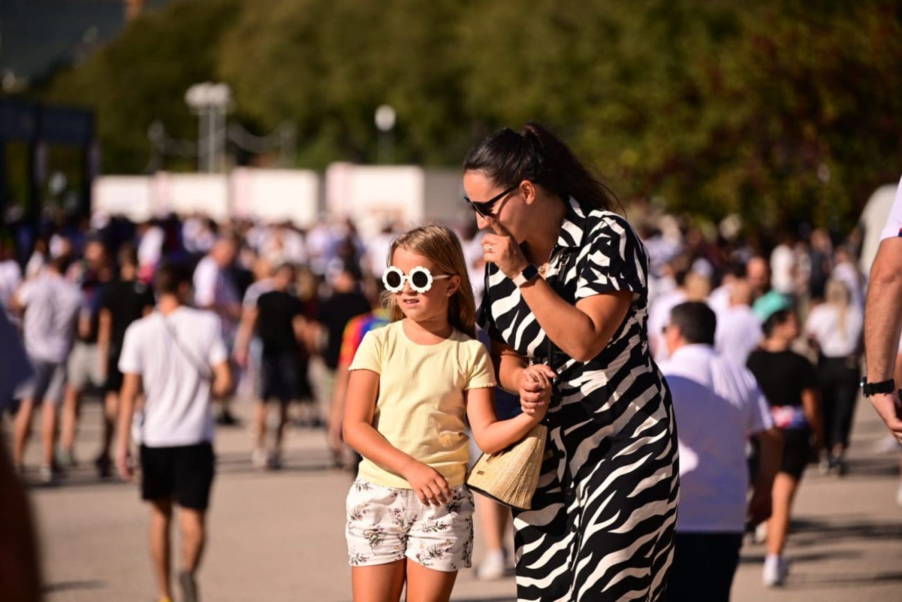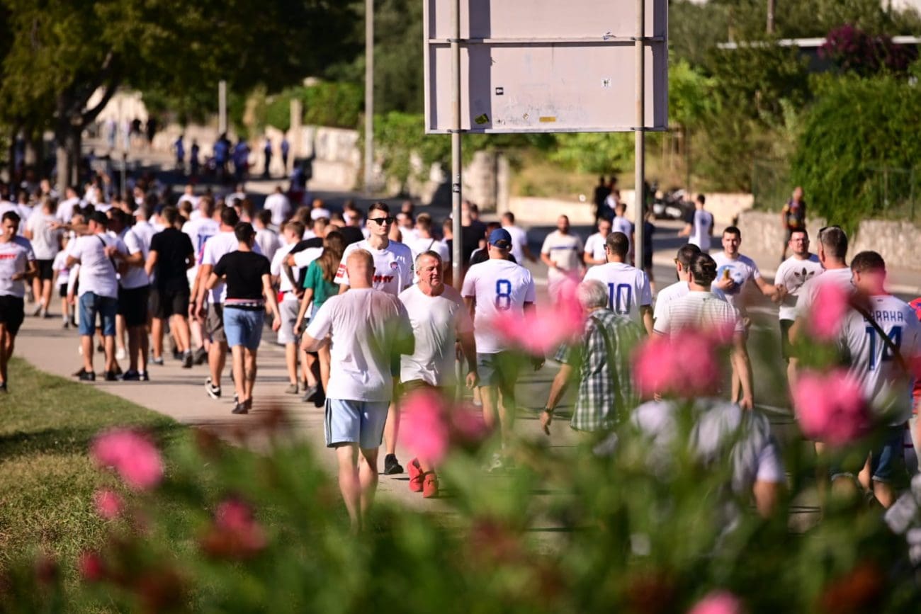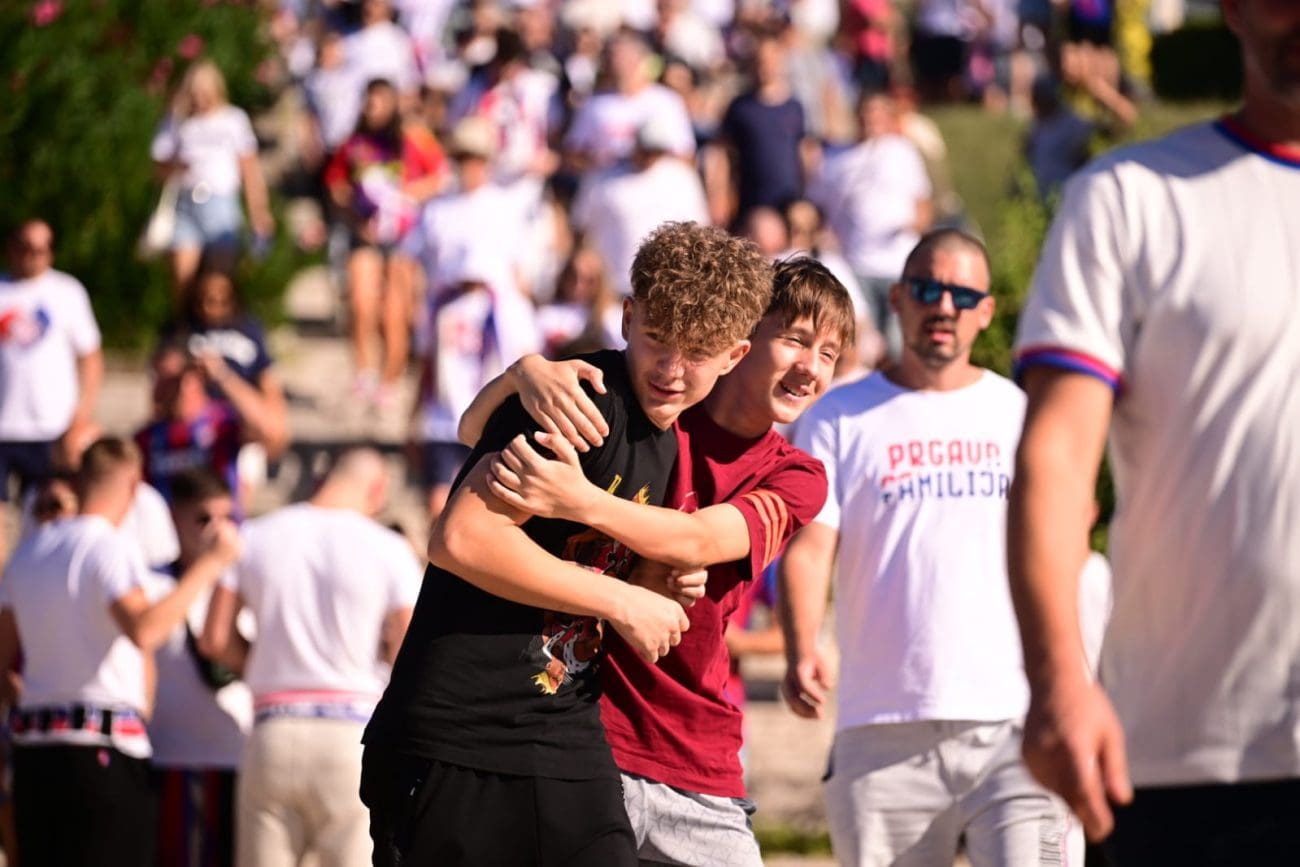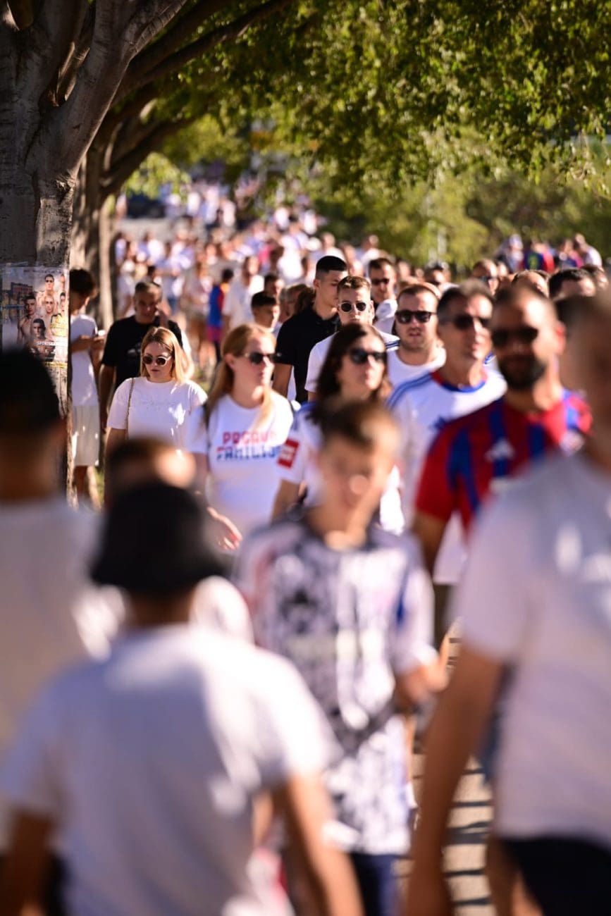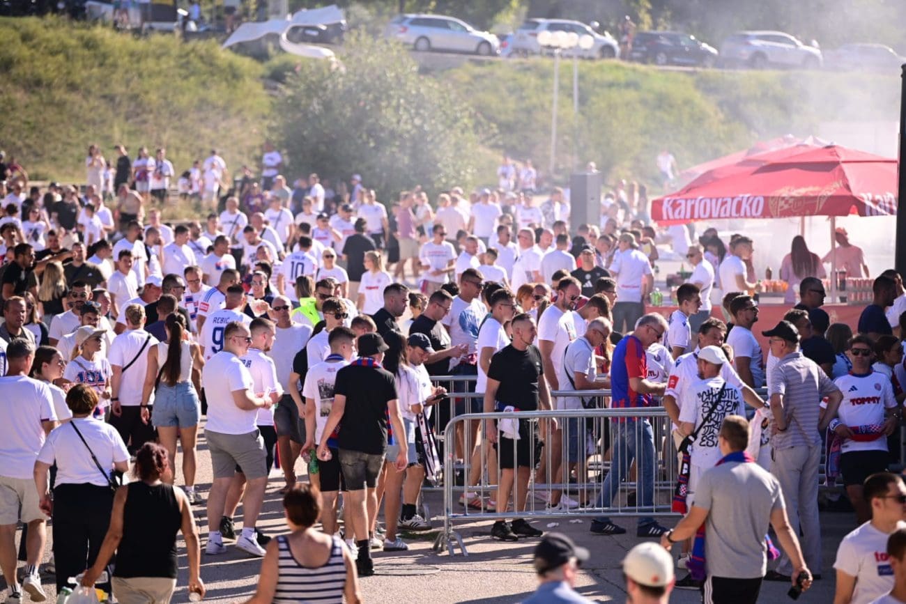 Na tribine i oko stadiona slijeva se šarolika masa – mlado, staro, obitelji s djecom, skupine prijatelja i veterani navijačkih dana. Svi zajedno ujedinjeni u jednoj boji i jednoj želji: bodriti Hajduk do pobjede.
