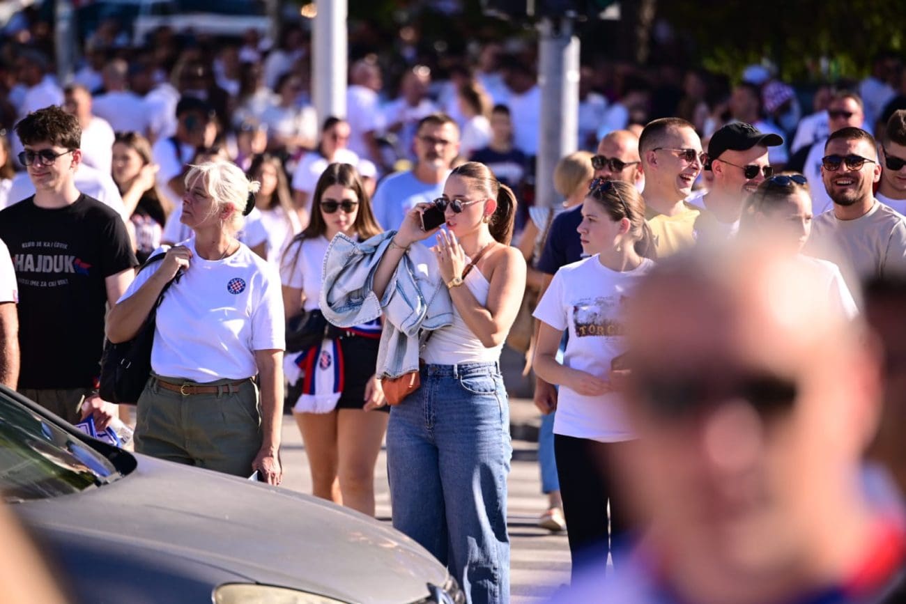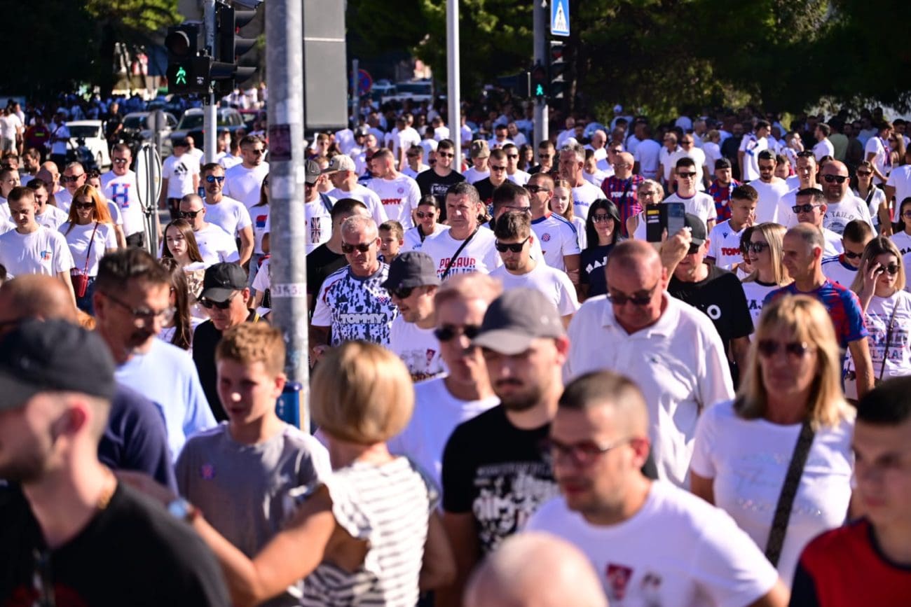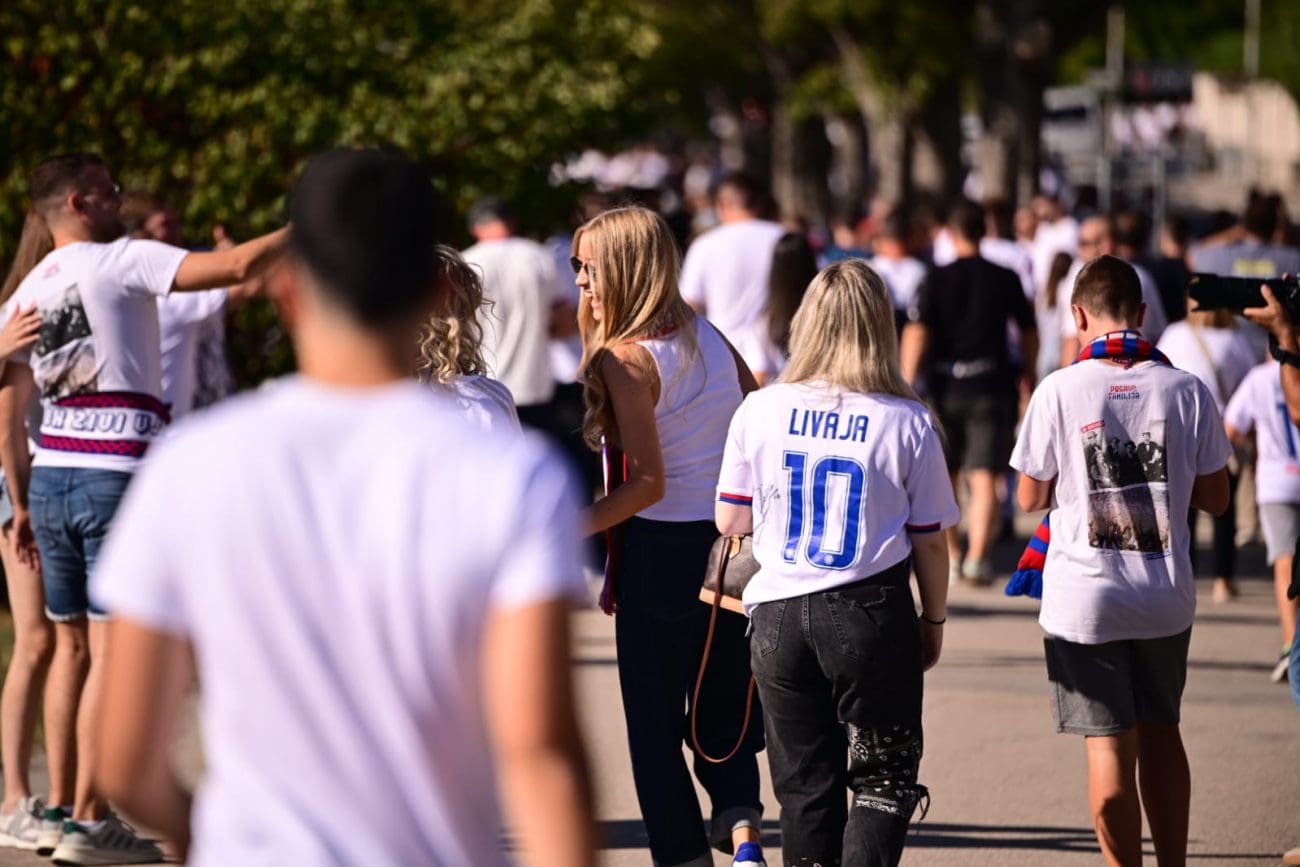 More ljudi u bilim majicama i šalovima stvorilo je pravi spektakl. Atmosfera se zahuktava, pjesma ne prestaje.