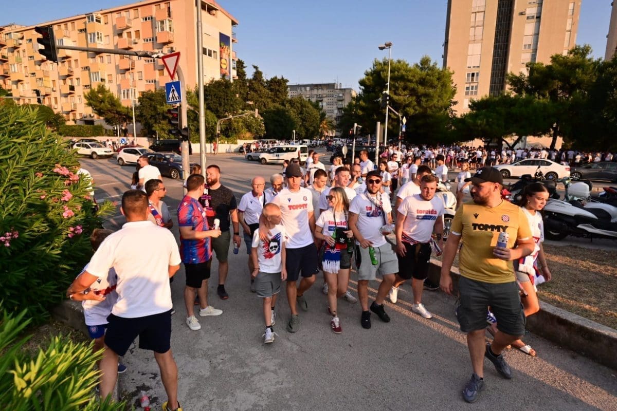 Sat vremena prije utakmice na Poljudu se slijevaju rijeke navijača. Mlado, staro, život cili.