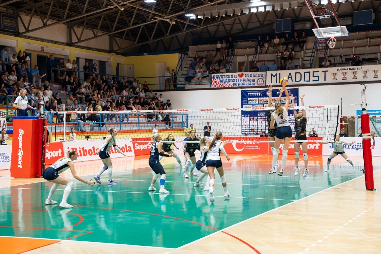 Kaštelanke su odlično otvorile susret i već u prvom setu pokazale kako se neće lako predati. Iako su u jednom trenutku imale zaostatak (15:19), serijom poena u završnici uspjele su preokrenuti i osvojiti set rezultatom 25:23, na oduševljenje ispunjene dvorane u Kaštel Starom.