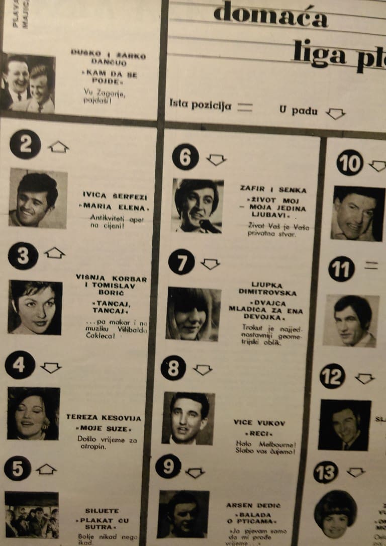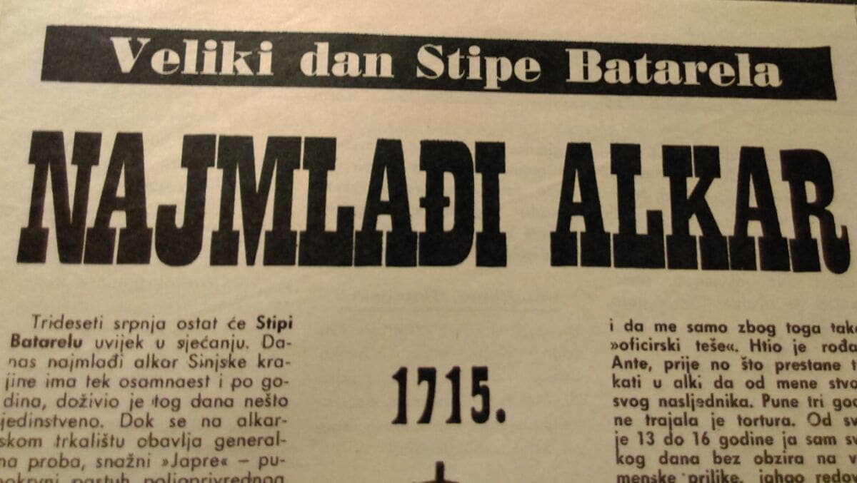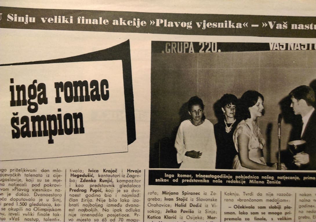 Plavi vjesnik je donosio i vijesti iz svijeta zabavne muzike, o poznatima i manje poznatima. Pa sam tako našao fotografiju mladoga Keme i Melite i tekst o Ingi Romac, Sinjanki koja je pobijedila na natjecanju pjevača amatera. Kasnije se Inga predstavila kao vrsna pjevačica i šteta je što nije nastavila. Valjda su i onda kvalitetnim pjevačima zapinjali noge. Kad smo kod Sinjana, našao sam tekst o alkaru koji se zove Stipe Batarelo. On je prije pedeset i kusur godina imao prigodu da igra Alku. Kud ćeš više! Šta je Stipe Batarelo napravio, svi dobro znamo: U sriduuu!