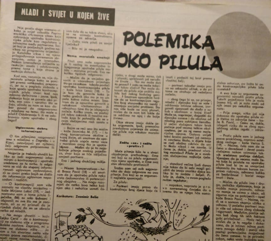 Ono što nam danas priušte neke pjevačke zvijezde i zvjezdice što se golotinje tiče, nije ni sjena šoku koji sam doživio kad sam prvi put pročitao u Plavom vjesniku tekst o golotinji. Pravi „šok“ je bio kad sam vidio fotografiju gole ženske. Možete li zamisliti kako se tada osjećao jedan omladinac za primjer? Strašno, još i danas drhtim radi te strašne fotografije. A postavio je Plavi i pitanje: Zašto za i zašto protiv…O pilulama je riječ, piranje za djevojke. Dakle, lipa i aktualna pitanja tretirao je Plavi vjesnik.