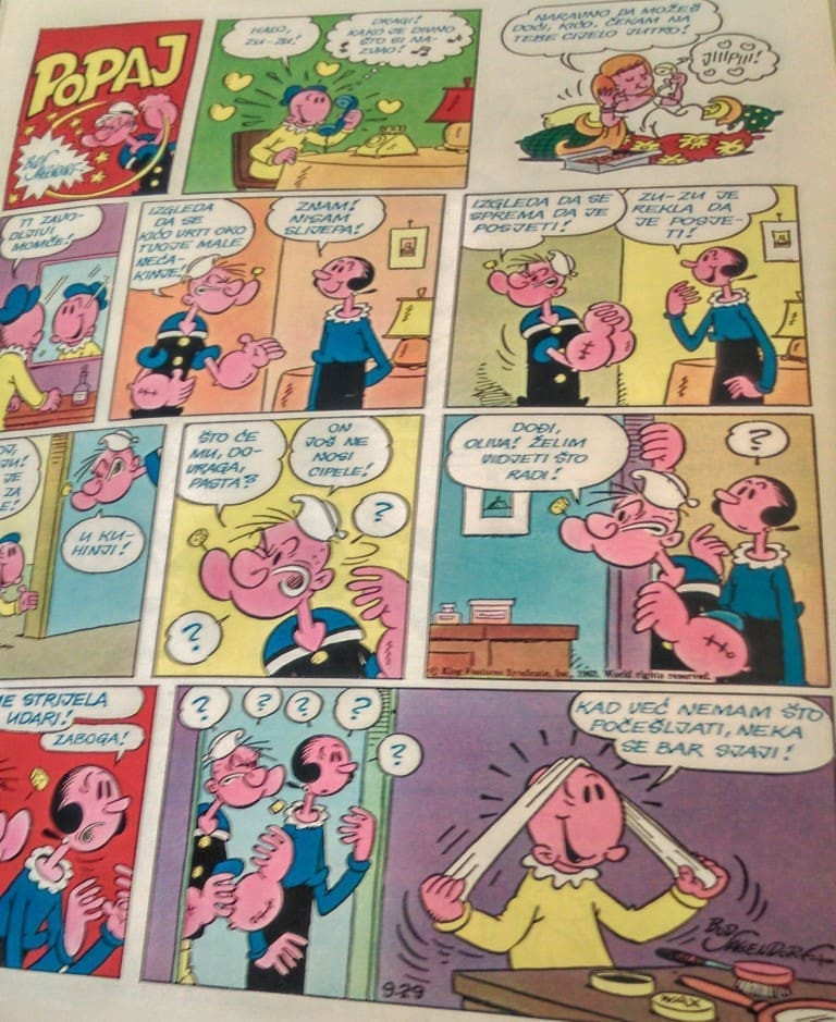 Plavi je imao i stripove. Popaj mi je bio drag, makar ništa nije govorio. Bio je u boji, a i to je nešto značilo u ono vrijeme.