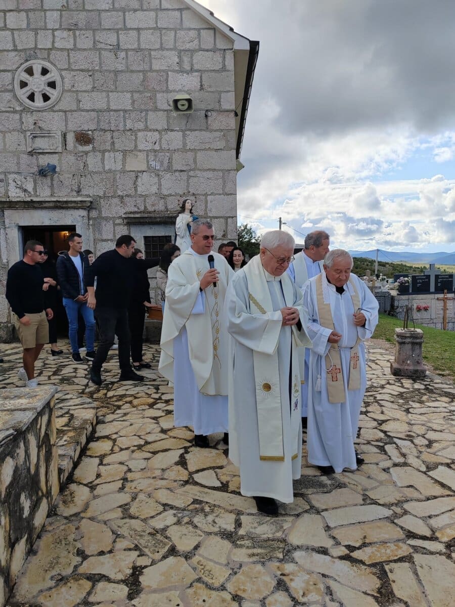 Svečano je danas bilo i u Vinovu Gornjem, pored Unešića gdje je svetu misu predvodio fra Josip Gotovac, inače kninski župnik uz provincijala Franjevačke provincije Presvetog Otkupitelja, Marka Mršu.