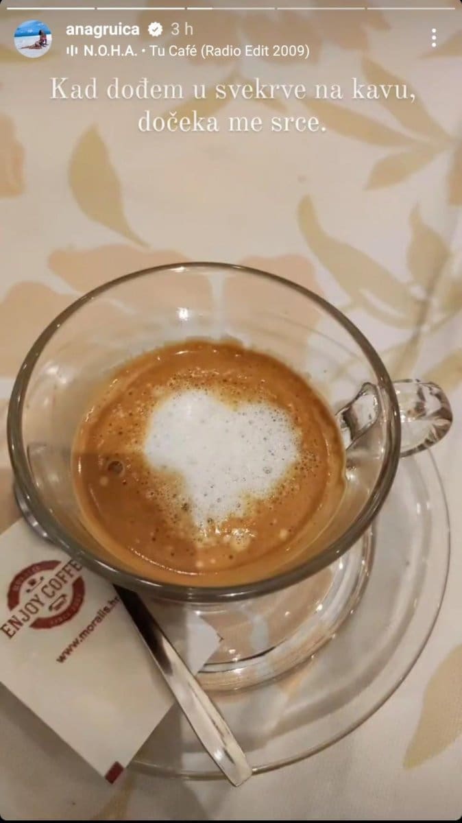 Glumica Ana Gruica Uglešić pohvalila se kako je sa svojom svekrvom Tanjom u odlučnim odnosima. Objavila je fotografiju šalice kave i napisala: "Kad dođem u svekrve na kavu, dočeka me srce".
