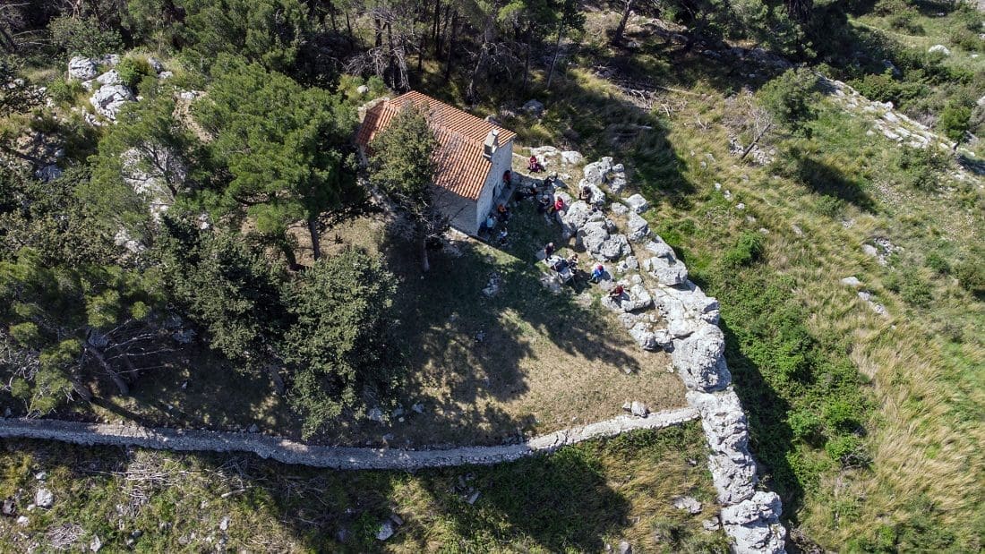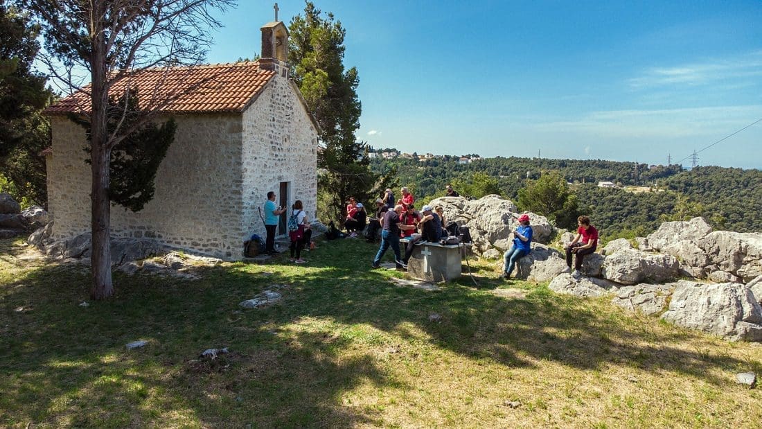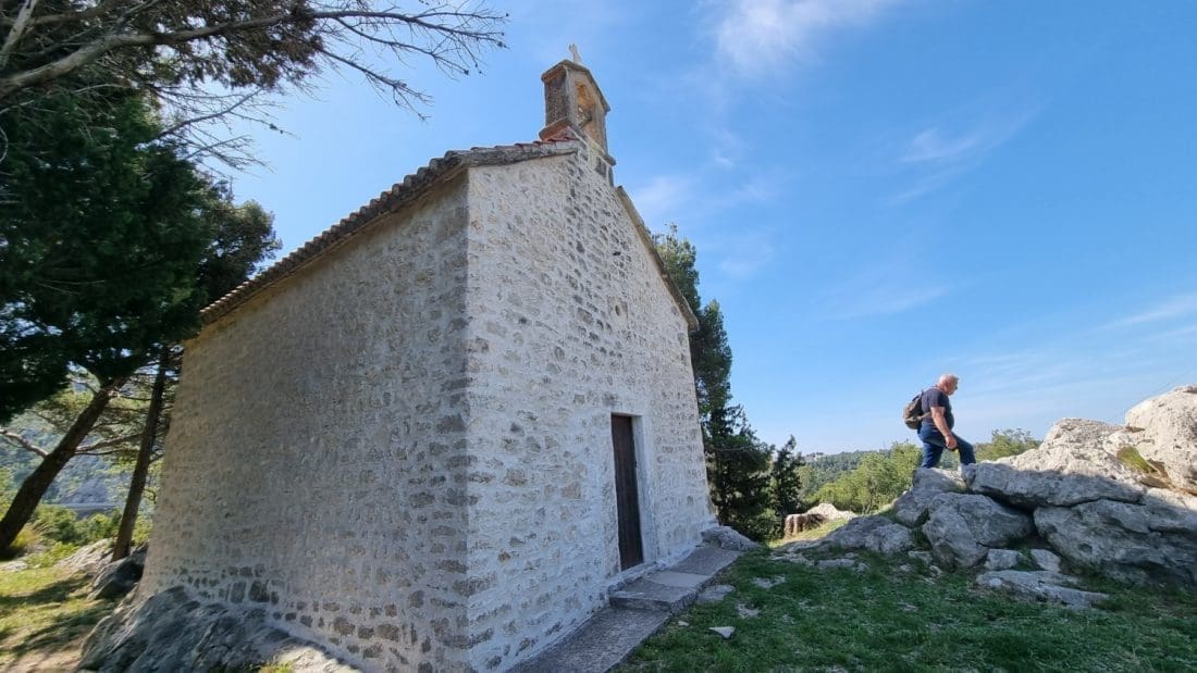 Najzapadnijim obroncima Mosora put vodi prema još jednoj znamenitoj crkvici, onoj Sv. Jure iznad izvora Jadran.
