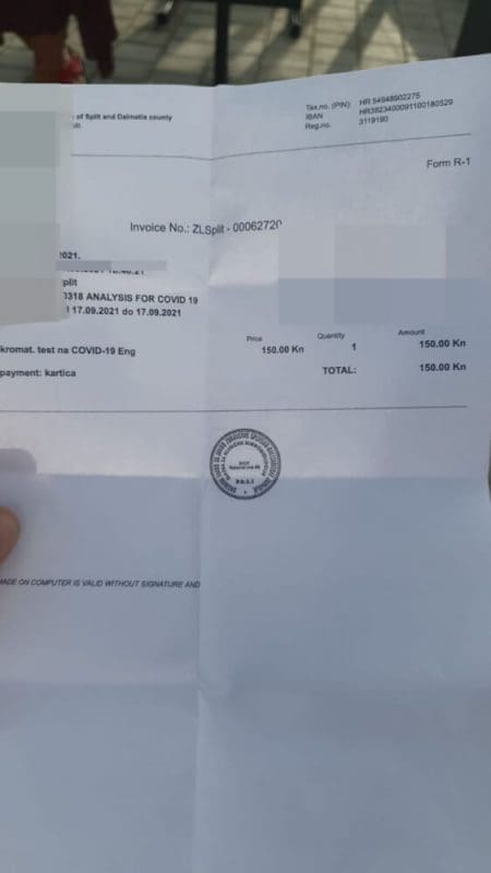 Brzi test na antigen virusa Sars-CoV-2, s nalazom na engleskom jeziku, sufinanciran je od strane Ministarstva zdravstva za strane turiste koji su ostvarili 3 ili više noćenja, a cijena je 75,00 kn", stoji na stranici Aerodroma Split.