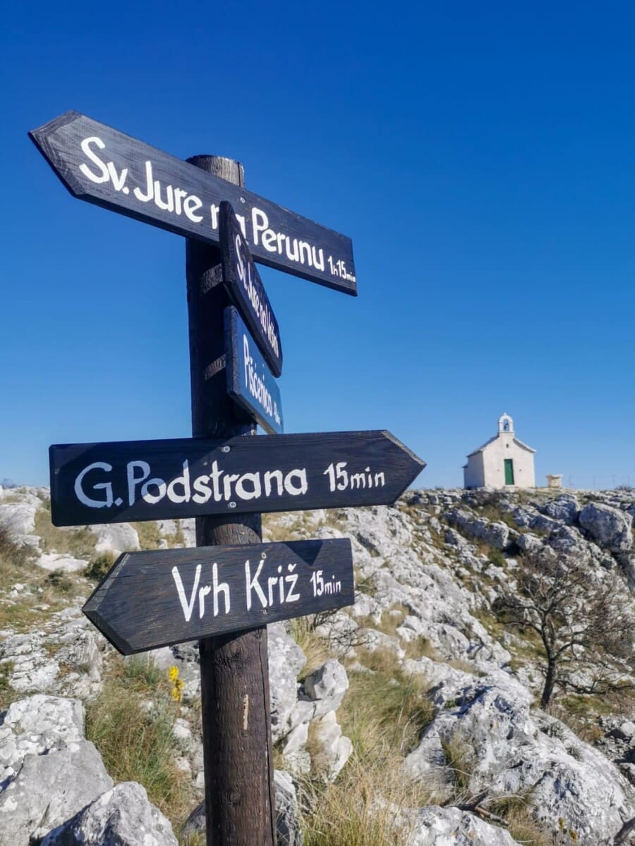 Najviši vrh Poljičke planine je Vela gora (594 m n.v.), smješten na brdu Mošnici, a na kartama je označen kao Zahod. Najviši vrh brda Perun je Križ (538 m).
