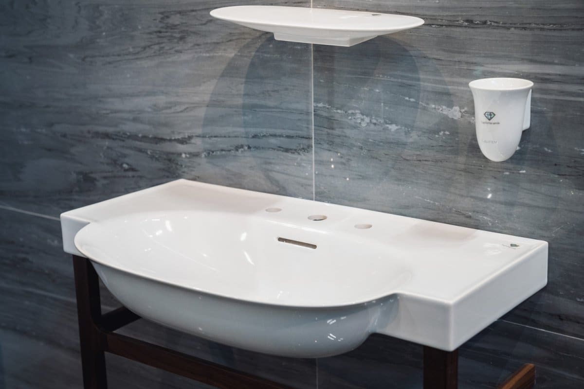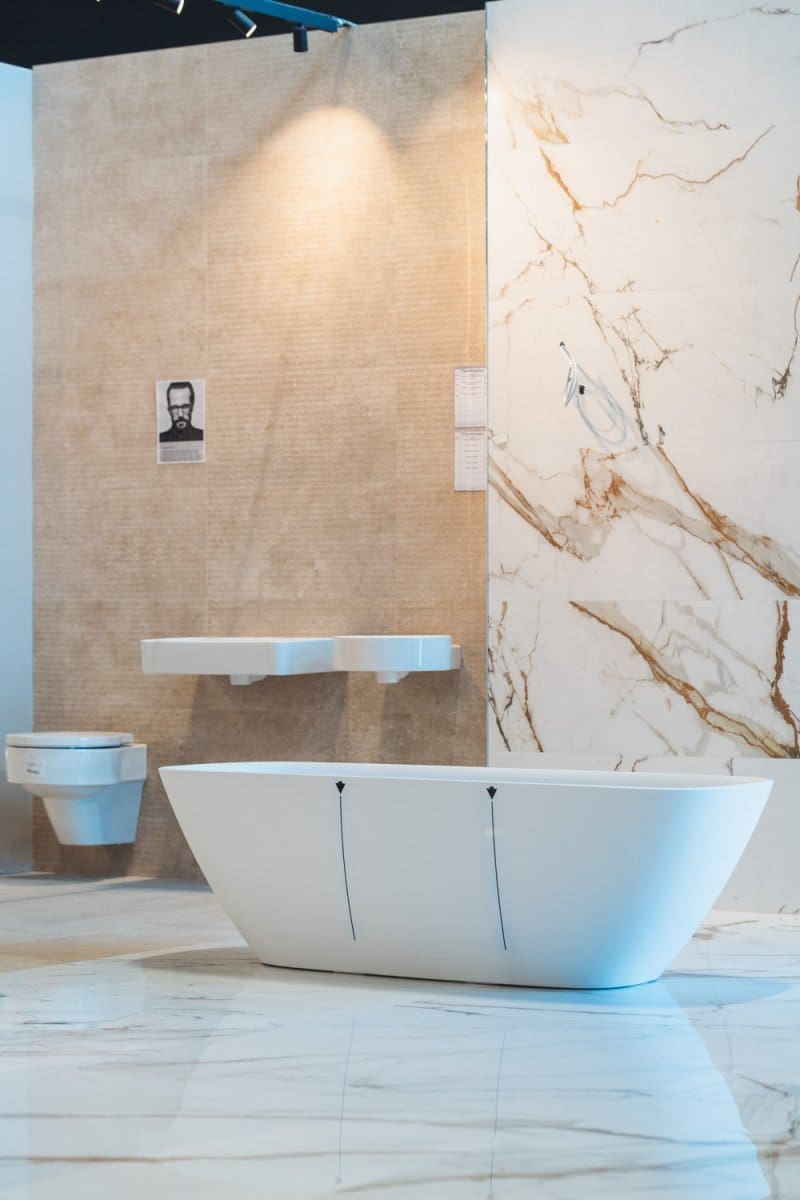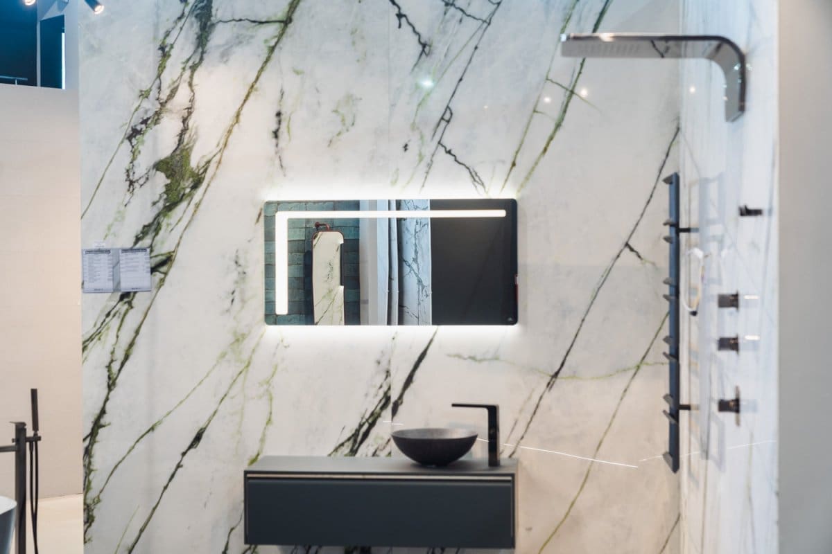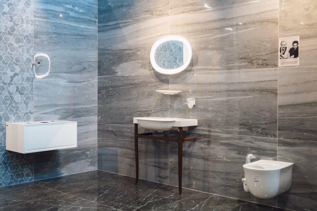 Najveća intervencija i promjena događa se pri specifičnim zahtjevima kod tuš sistema i umivaonika gdje se inzistira na posebnim materijalima s prilagođenim način montaže. Riječ je o podžbuknom načinu s dva izljevna mjesta. U pravilu više nema klasičnih ruža u tušu već je sve na pritisak s termostatskim regulatorom za sigurnost. Rainfall tuš s prebacivačem na slapni model tuširanja iz programa Porcelanosa grupe može vašu kupaonicu pretvoriti u privatnu wellness oazu. Ukoliko ipak preferirate kade naspram tuševa, natural stone kade su apsolutni imperativ jer su praktički neuništive.