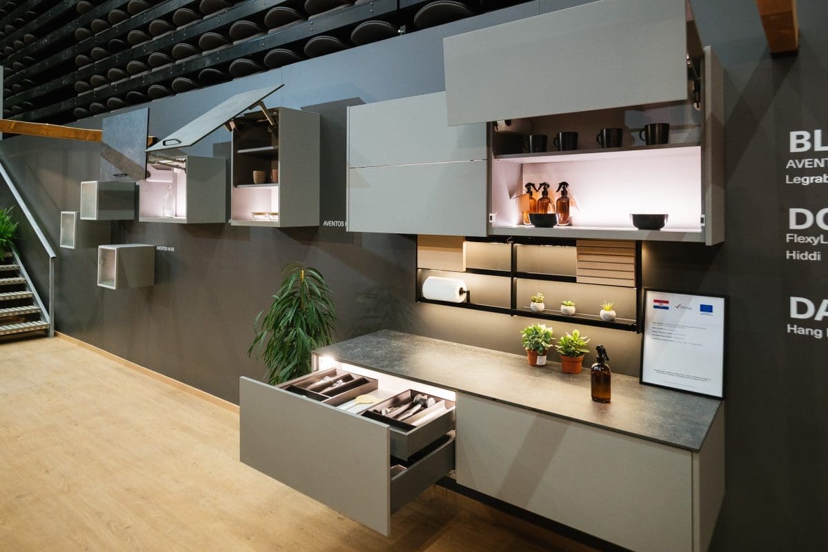 Sustav podizno-preklopnih okova Blum AVENTOS vam omogućuje veću slobodu kretanja u kuhinji. Posjetite nas i uvjerite se i sami kako otvaranje i zatvaranje preklopa može postati izuzetno jednostavno, lagano i tiho.
