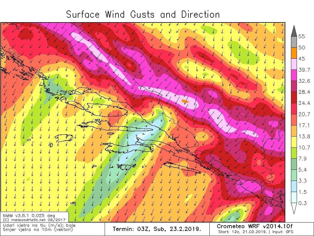 Neki prognostički modeli previđaju mogućnost da dijelovi Dalmacije, osobito južnije od Splita, dobiju najjaču buru posljednjih nekoliko godina!