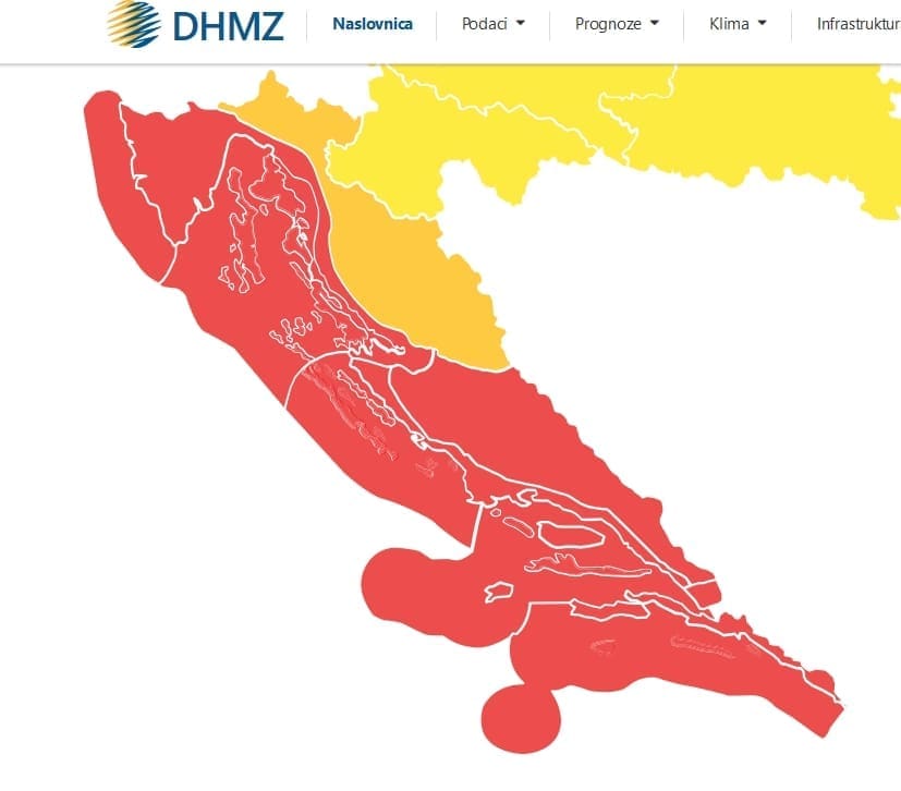 DHMZ je, unutar sustava MeteoAlarm, za subotu za cijeli Jadran izdao crveni, najviši stupanj upozorenja na opasne meteorološke pojave. Upozorenje se odnosi na orkanske udare bure, a žuto upozorenje vrijedi za vrlo niske temperature zraka. S obzirom na očekivane brzine vjetra tijekom subote, izvjesno je da Dalmaciju očekuju veći poremećaju u cestovnom prometu, kao i prometu morem.