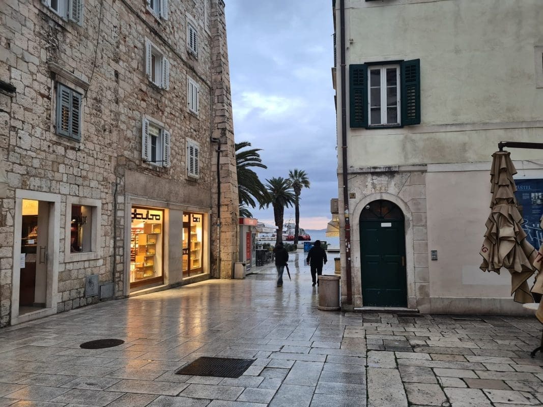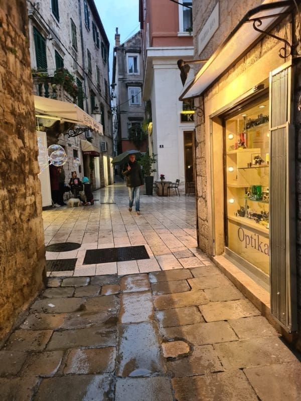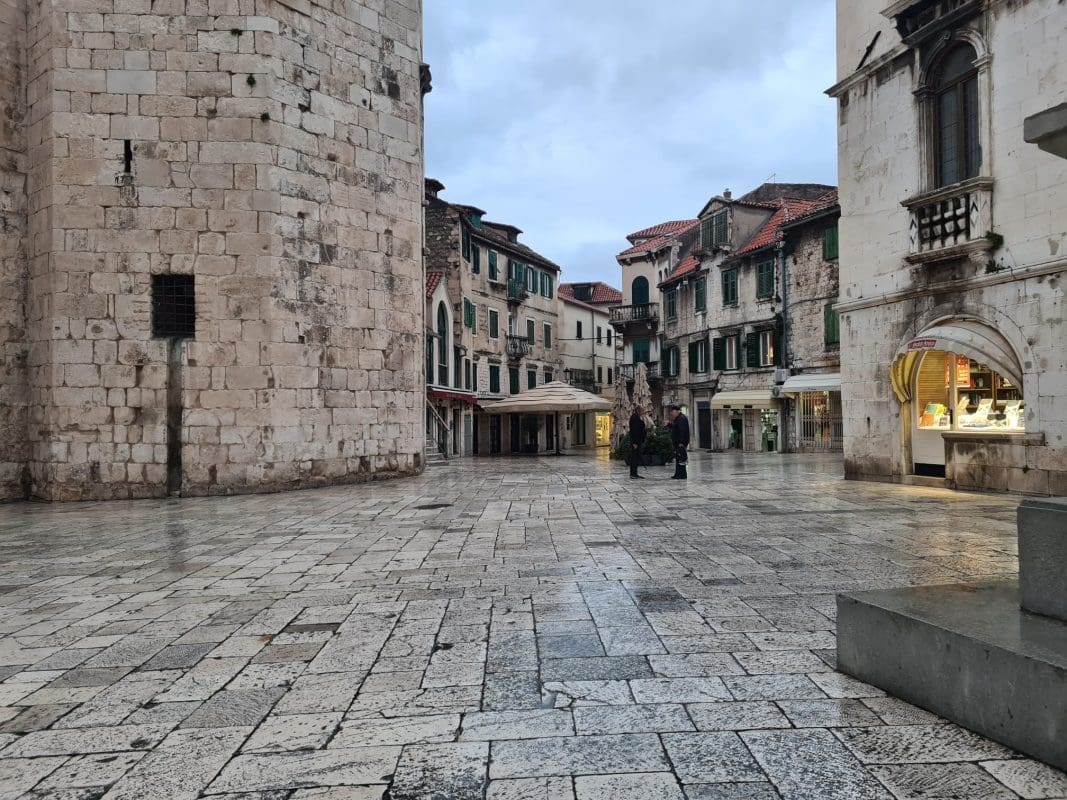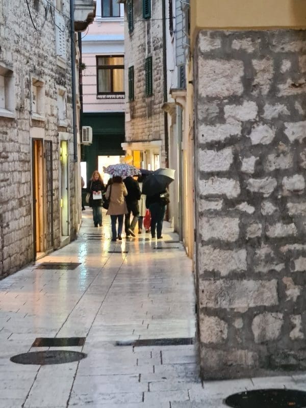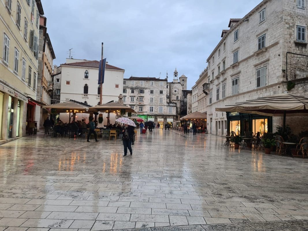 Iako je u petak uporno padala, kiša nije uspjela spriječiti Splićane da se prošetaju centrom grada. Većiom su to bili znatiželjni turisti u obilasku, ali moglo se naići i na poneko domaće lice.