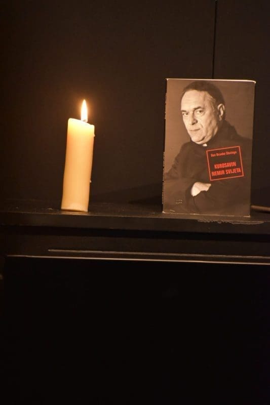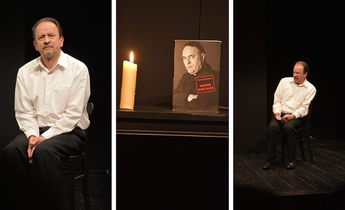„Zapisi iz nevremena“ nisu standardni dramski tekstovi, već novinske kolumne, eseji i priče don Branka Sbutege koji je bio župnik Svetog Stasije u Dobroti u Crnoj Gori, a ujedno i posljednji hrvatski katolički svećenik iz Prčnja, Crne Gore. Monodrama Trpimira Jurkića premijerno je izvedena davne 2007. na istom mjestu, a vraćena je na repertoar 12. i 20. travnja. Dramaturšku je ulogu preuzela Lada Martinac Kralj, a pozadinski dio scene prati video-projekcija Ane Bošnjak.