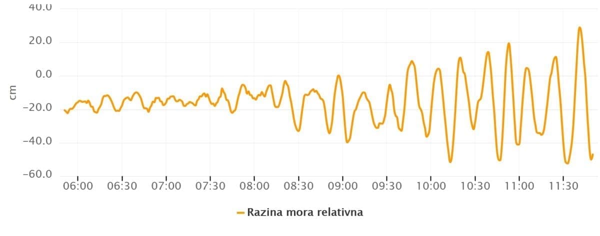 Naši čitatelji s područja Čiova javljaju oscilacije razine mora preko jednog metra.