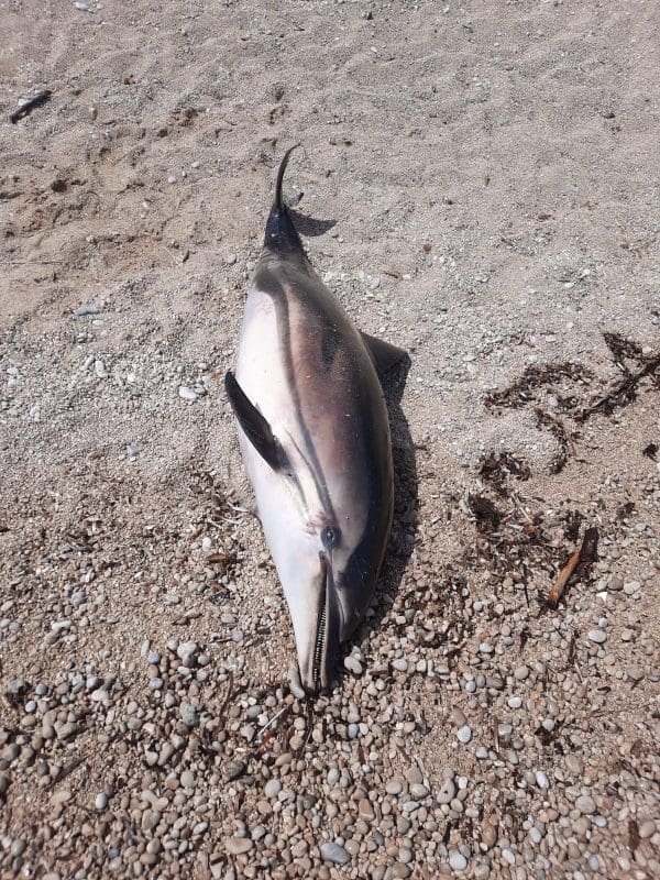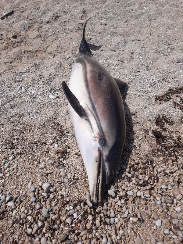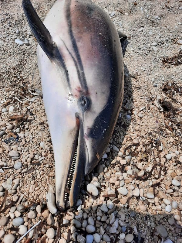 "Danas je na glavnu orebićku plažu more izbacilo uginulog dupina. Prema riječima stručnjaka radi se o prugastom dupinu (Striped dolphin-Stenella coeruleoalba) i najčešća je vrsta u Sredozemnom moru. Ovaj jadni naš, nažalost uginuli, dug je oko 1,5 m i težine oko 80 kg i nema nekih posebno vidljivih ozljeda osim nešto malo na vrhu kljuna i kraj oka. Ova vrsta živi u Jadranu, najviše u južnom dijelu, okuplja se u velikim skupinama i zna često skakati visoko van mora izvodeći različite ludosti.