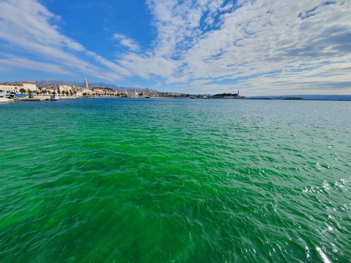 U ranim poslijepodnevnim satima more kod hotela Ambasador u Splitu poprimilo je neprirodnu, fluorescentno-zelenu boju. Da se nešto neobično događa vidjelo se i po tome što se na mjestu događaja pojavilo i nekoliko policajaca.