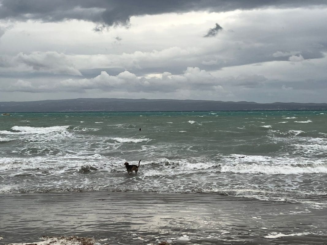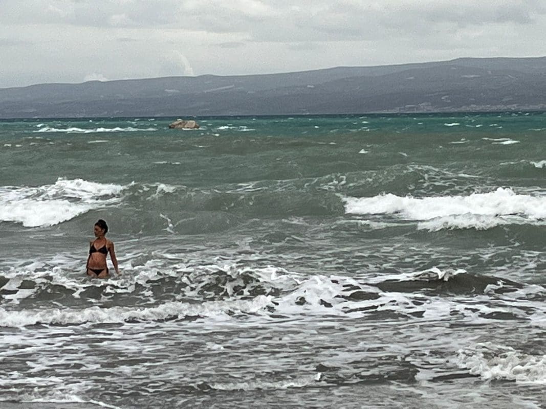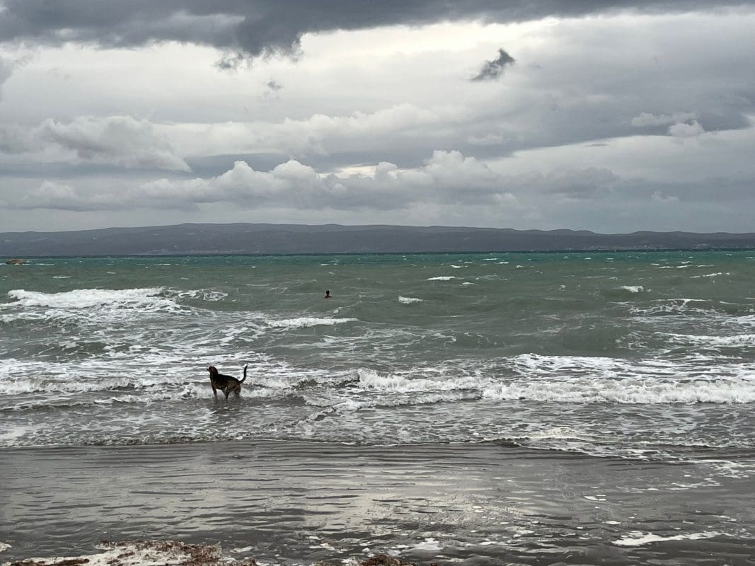 Za razliku od prethodnih dana, danas se rijetko kupao na ovoj plaži, a piciginaša nije bilo na vidiku. Ipak, jedna žena odlučila se okupati u uzburkanom moru. Inače, danas je u dijelu Dalmacije zabilježeno stanje mora 6.