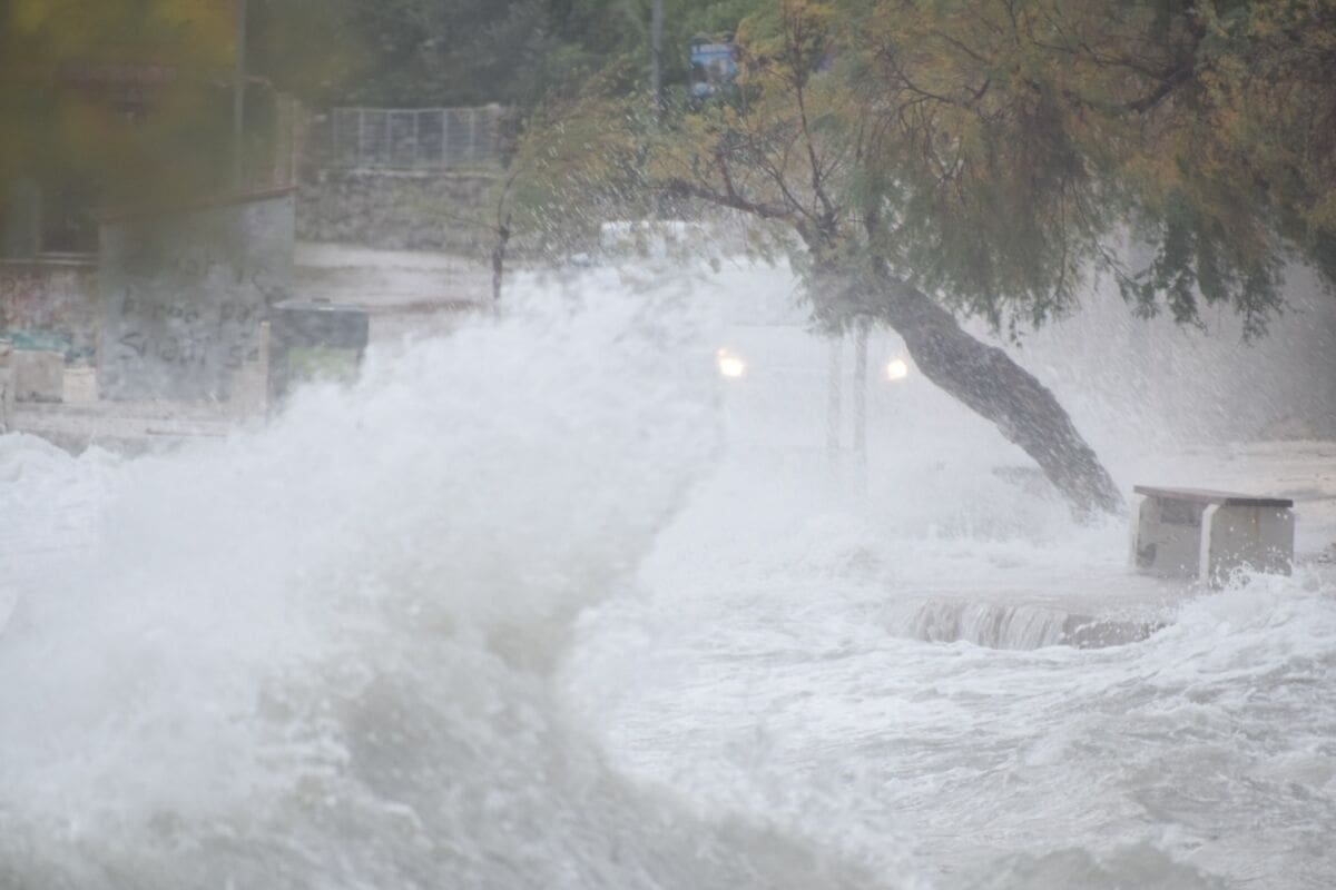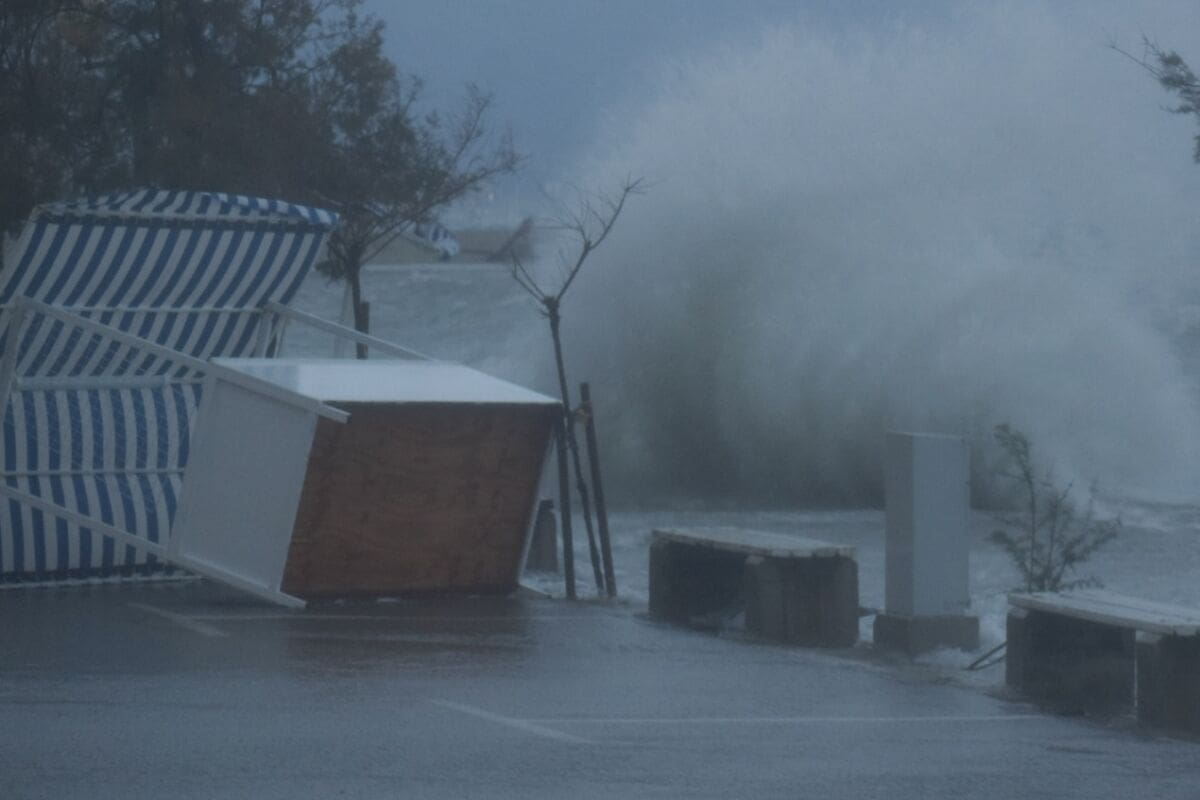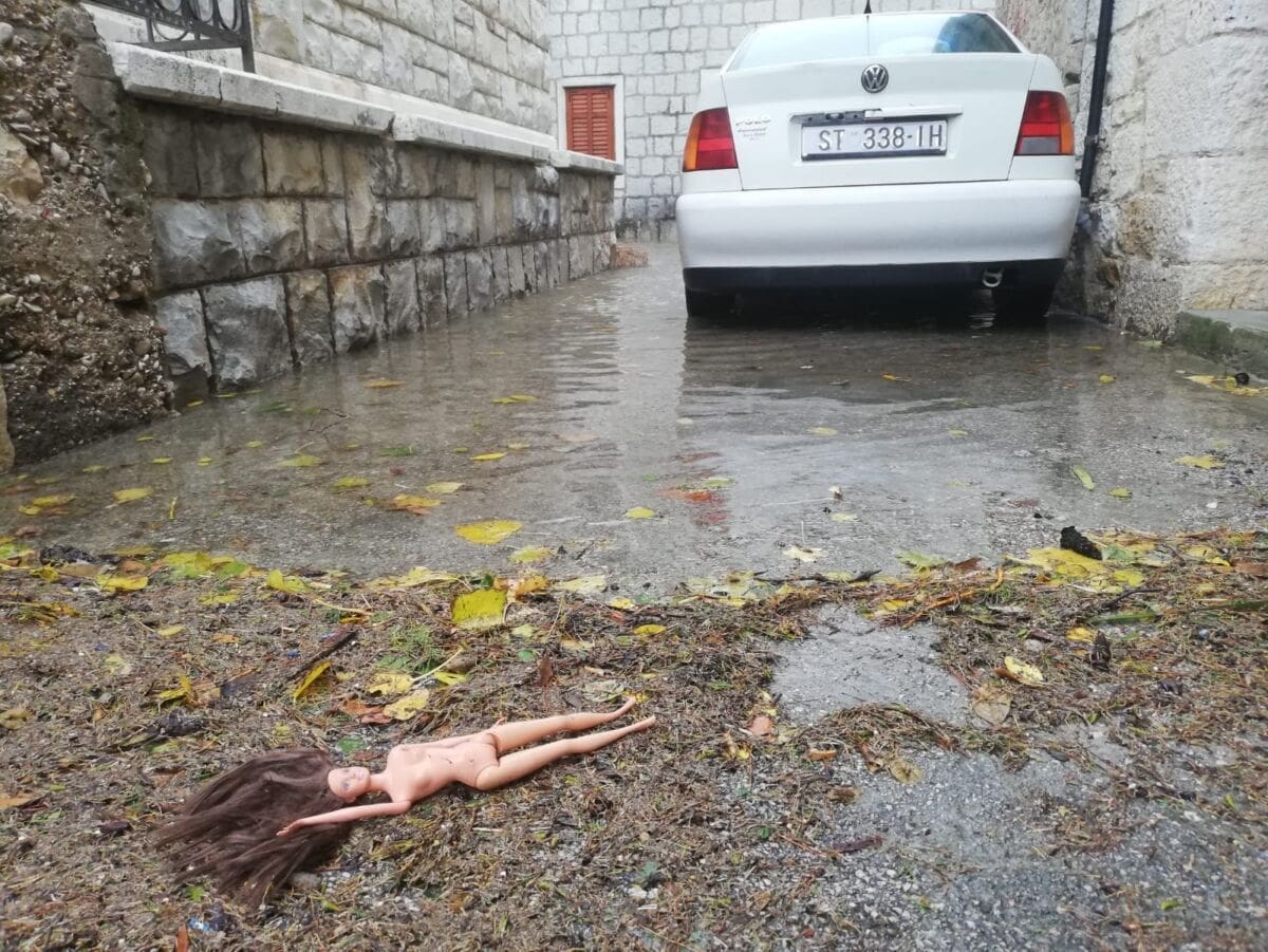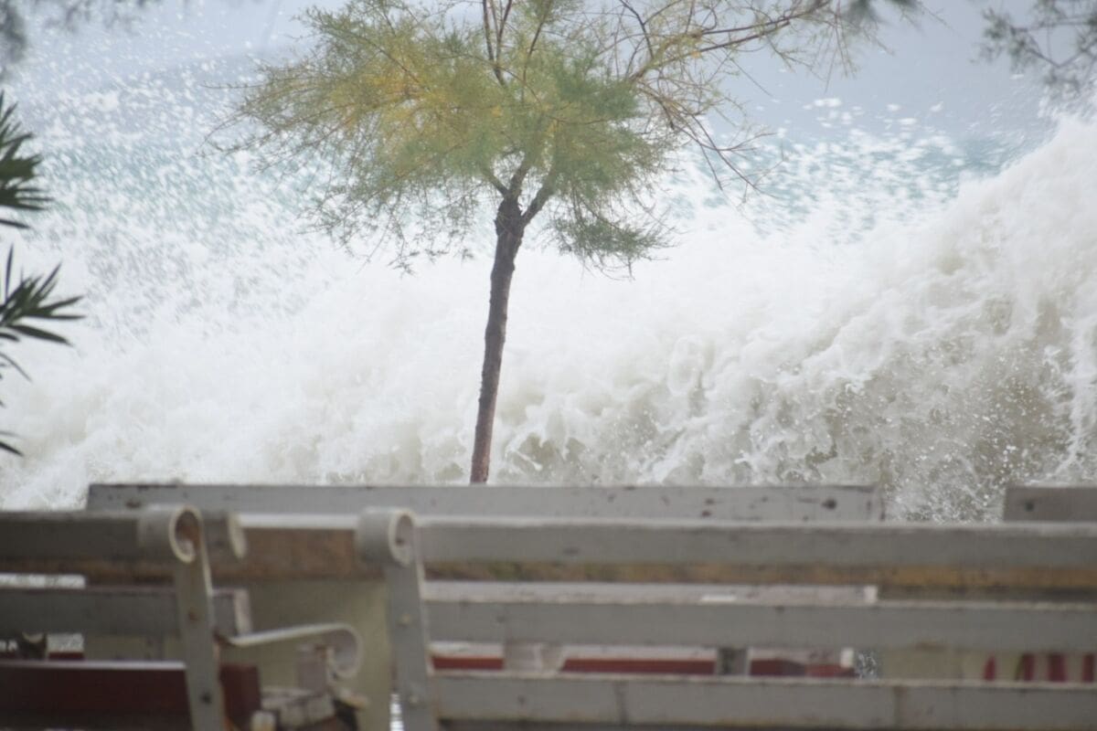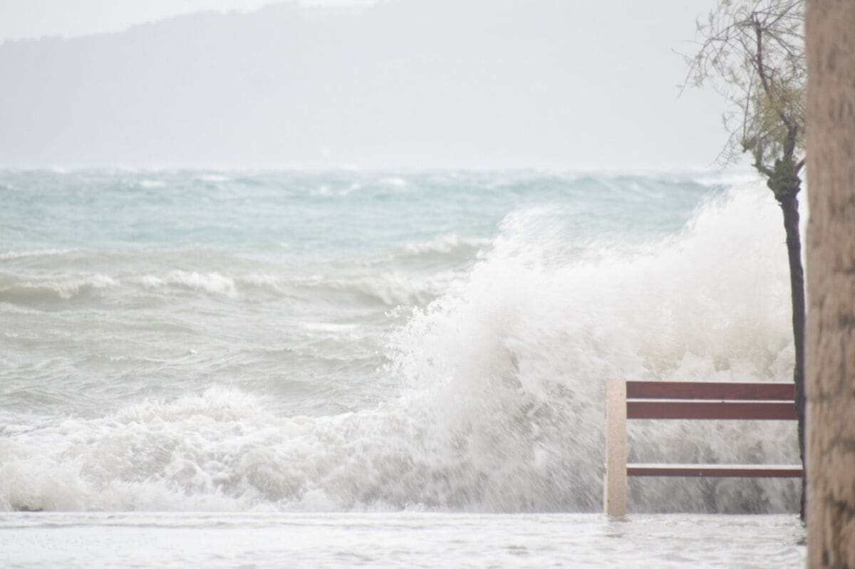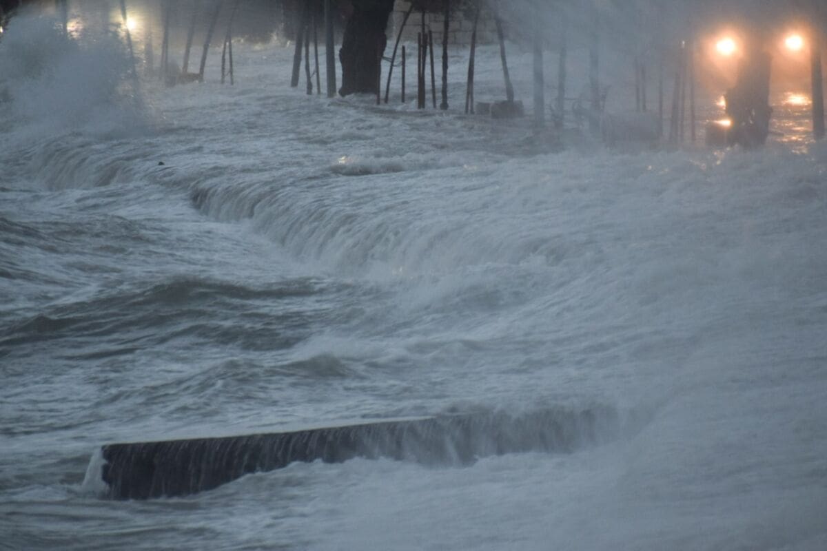 Najveća plima ove godine poplavila je kaštelansku rivu, a valovi su ponegdje donosili more sve do kućnih pragova. Plima je na rivu i na ceste uz more nasula žalo i kamenje.