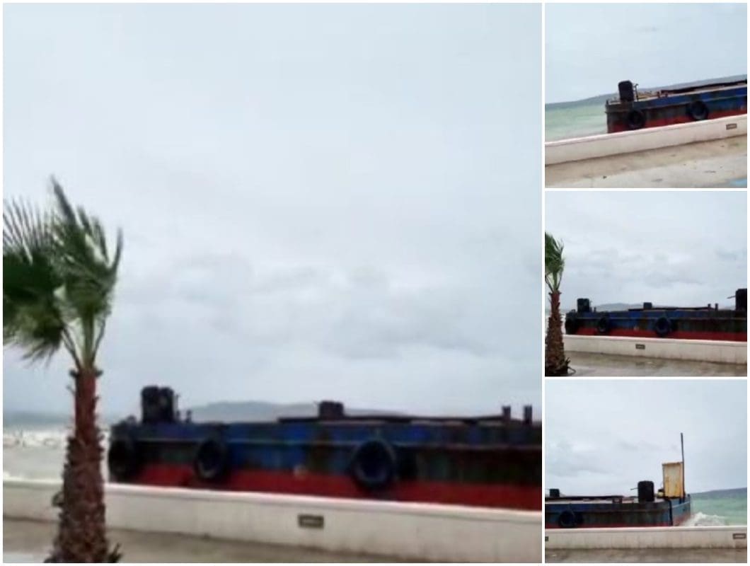 Jedna barža, odnosno teglenica iz nepoznatog pravca je doplutala i zaustavila se na plaži u Kaštel Starom.