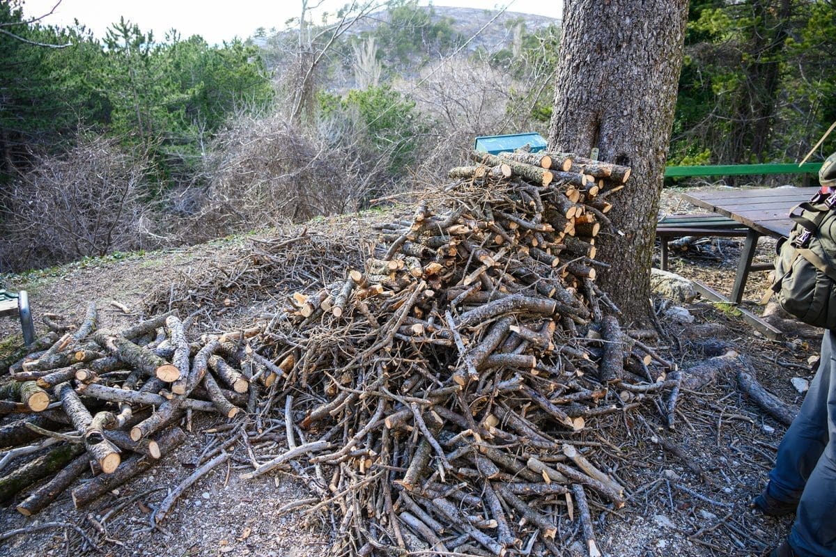 Nakon što se tijekom subote posjekla 95 godina stara srebrna smreka ispred planinarskog doma Umberto Girometta i to zbog potpunog sušenja, u nedjelju su se od njenih grana pripremao materijal za ogrjev.