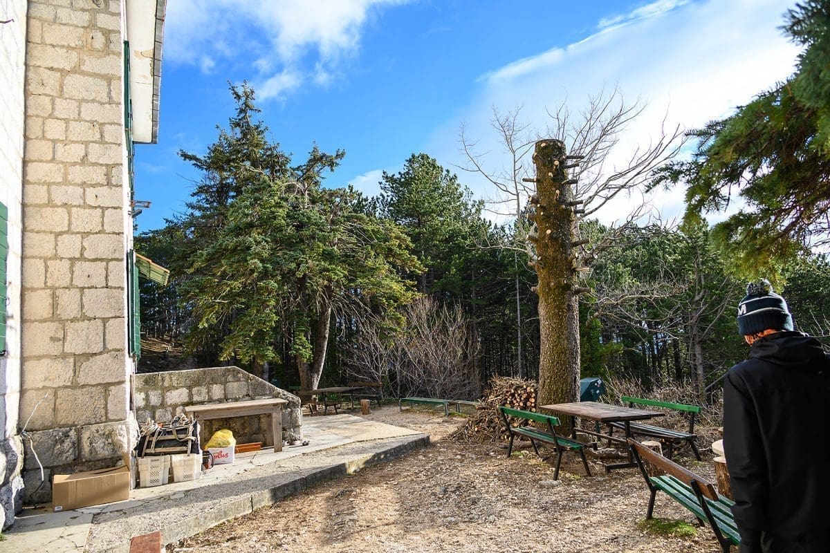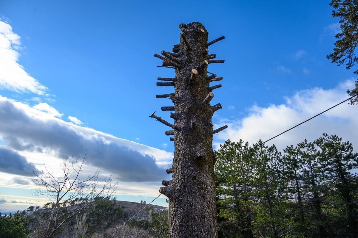 Nakon što se tijekom subote posjekla 95 godina stara srebrna smreka ispred planinarskog doma Umberto Girometta i to zbog potpunog sušenja, u nedjelju su se od njenih grana pripremao materijal za ogrjev.
