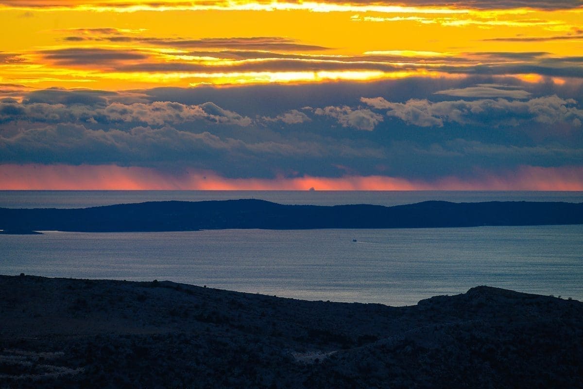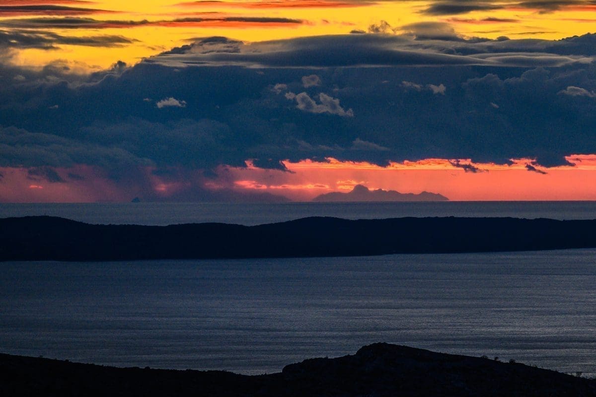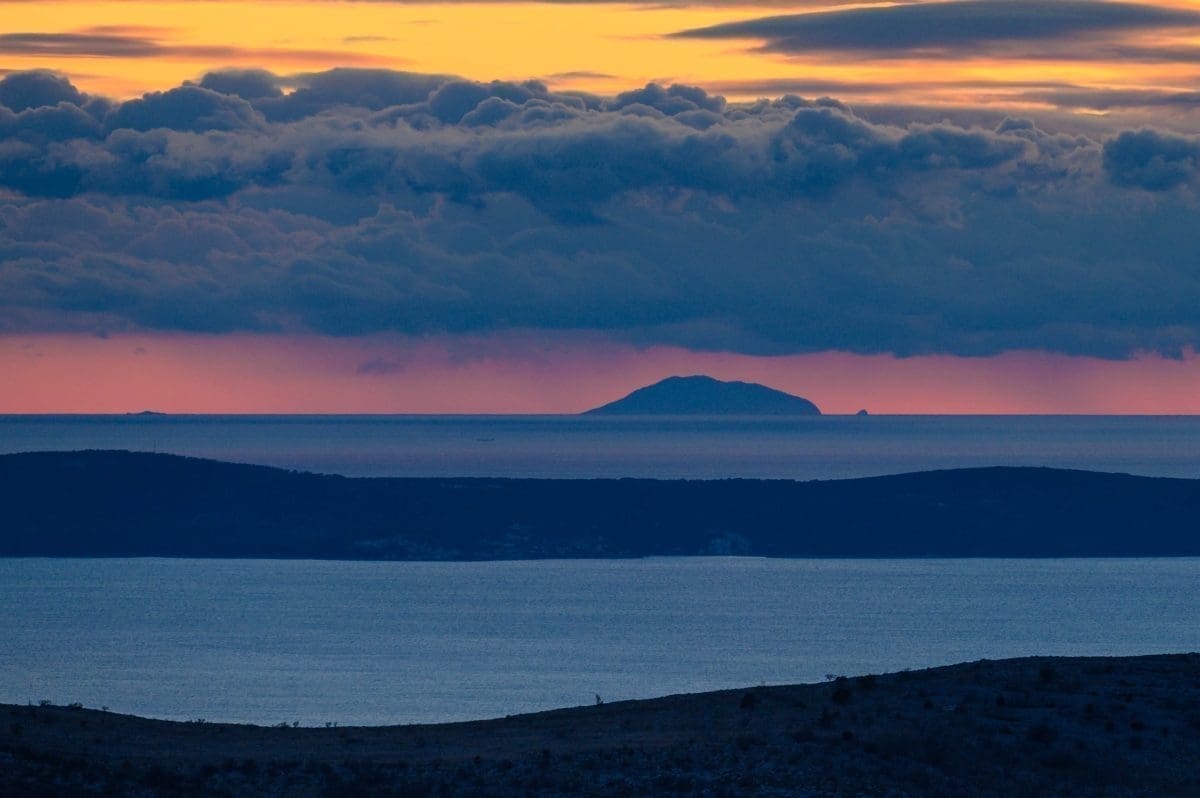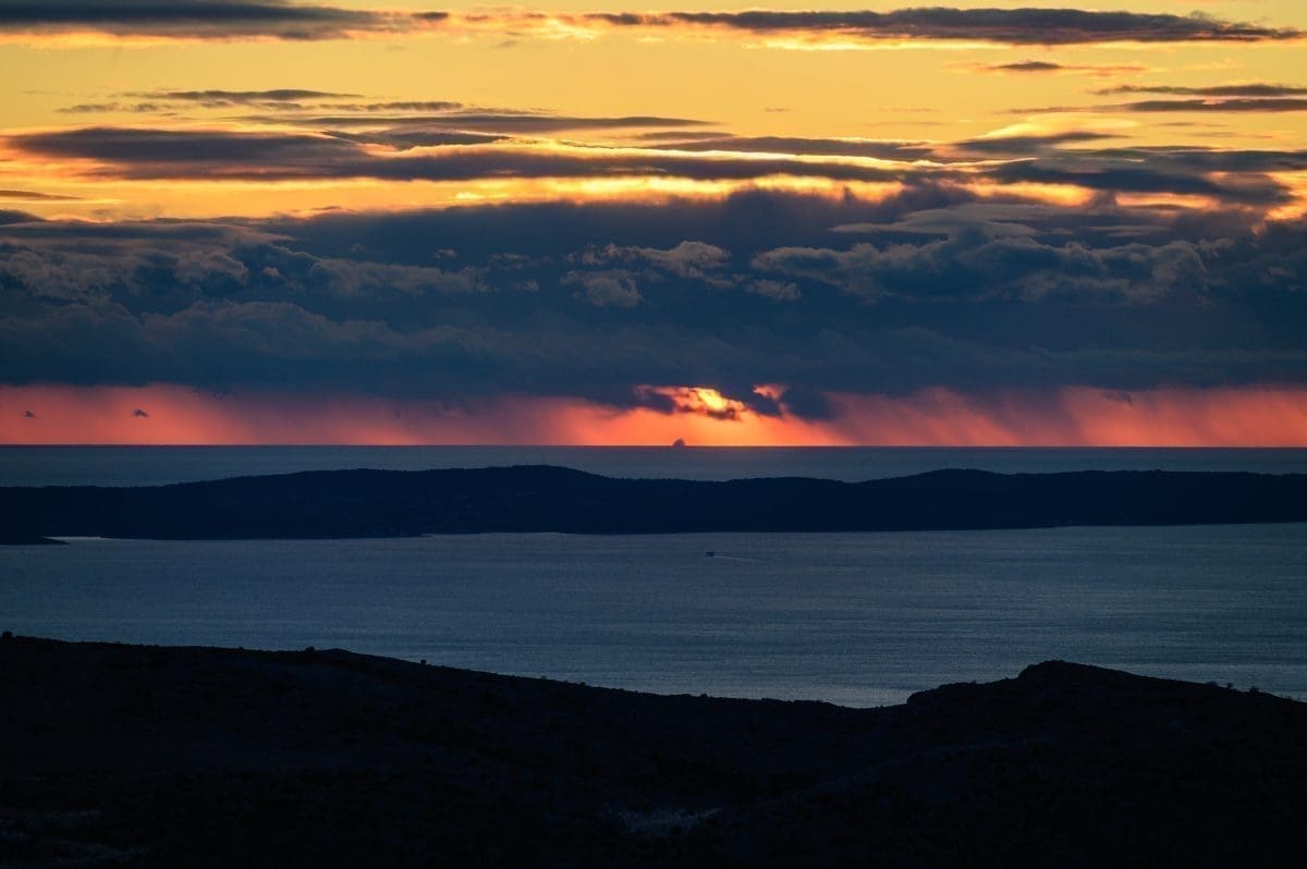 Kraj dana donio je predivne prizore kada se nakon zalaska sunca na zapadnom horizontu "ukazala" Italija. Vidljivost je bila jako dobra, pa se nije vidio sam najveći masiv Apenina, Gran Sasso s najvišim vrhom Corno Grande (2912 mnv) nego se iza Svetog Andrije jako dobro vidio masiv s najvišim vrhom Monte Aquaviva, a vrhovi iznad 2500 metara vidjeli se se sve do iza Drvenika.