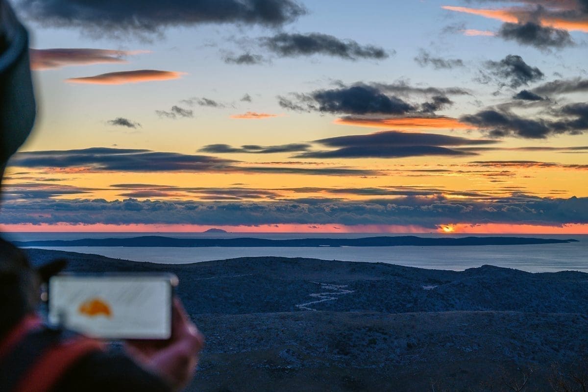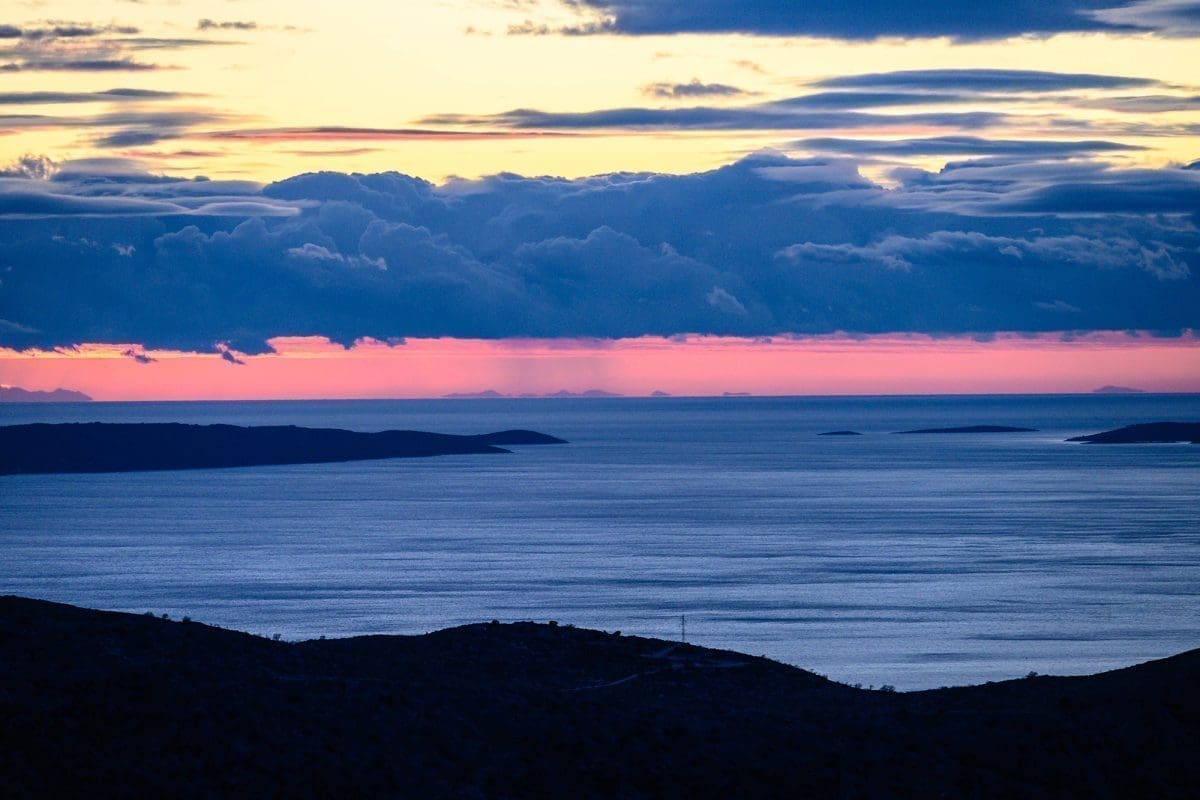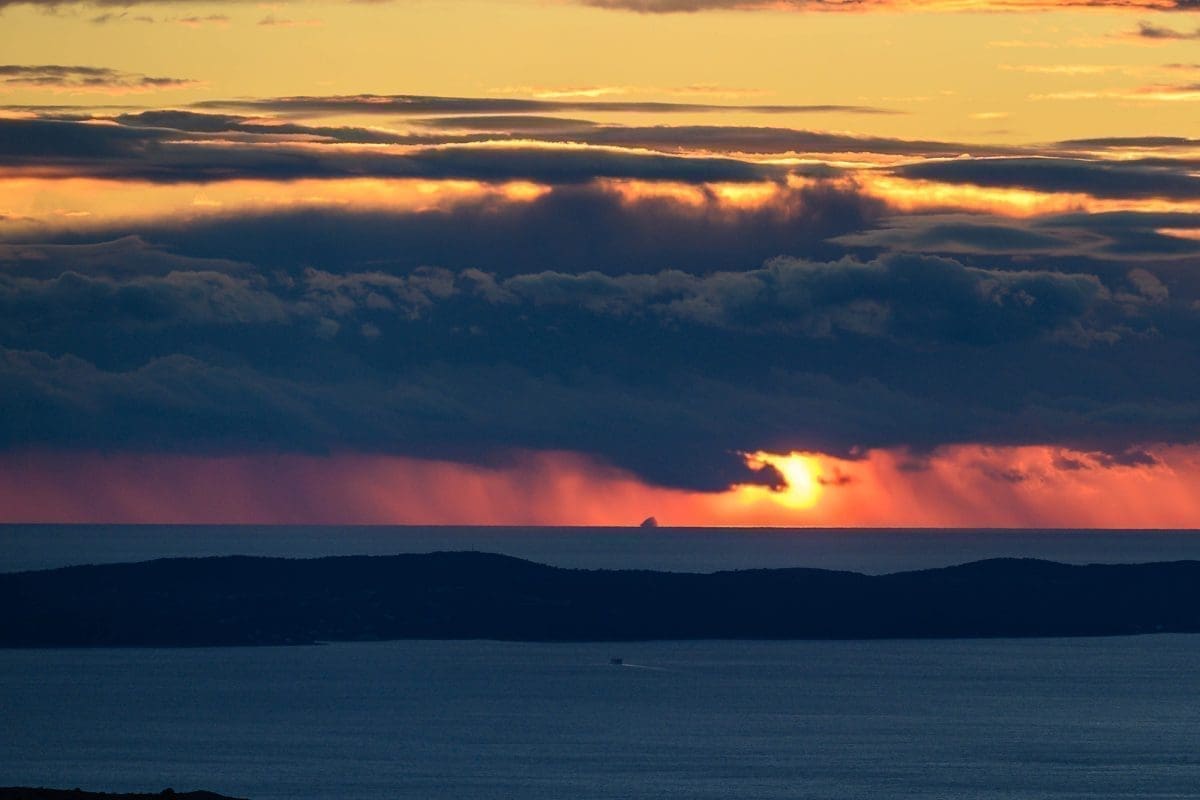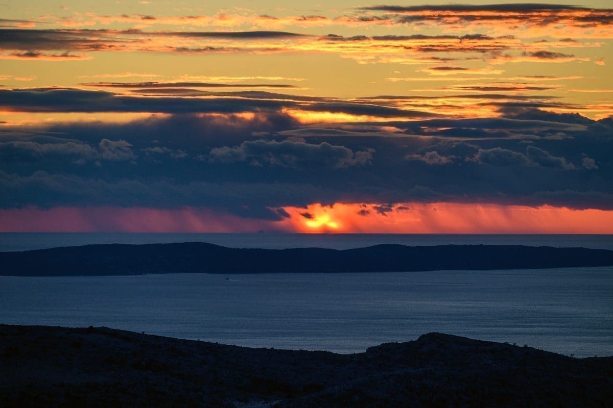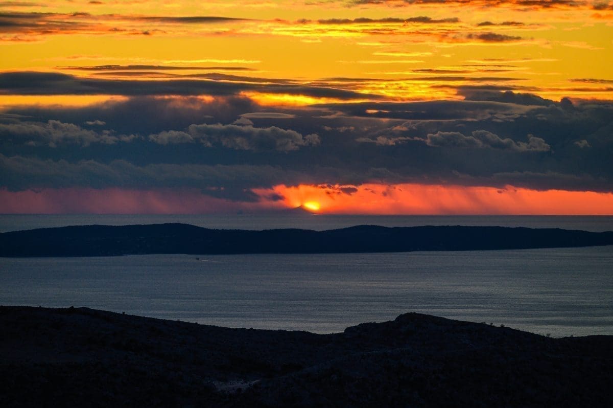 Kraj dana donio je predivne prizore kada se nakon zalaska sunca na zapadnom horizontu "ukazala" Italija. Vidljivost je bila jako dobra, pa se nije vidio sam najveći masiv Apenina, Gran Sasso s najvišim vrhom Corno Grande (2912 mnv) nego se iza Svetog Andrije jako dobro vidio masiv s najvišim vrhom Monte Aquaviva, a vrhovi iznad 2500 metara vidjeli se se sve do iza Drvenika.