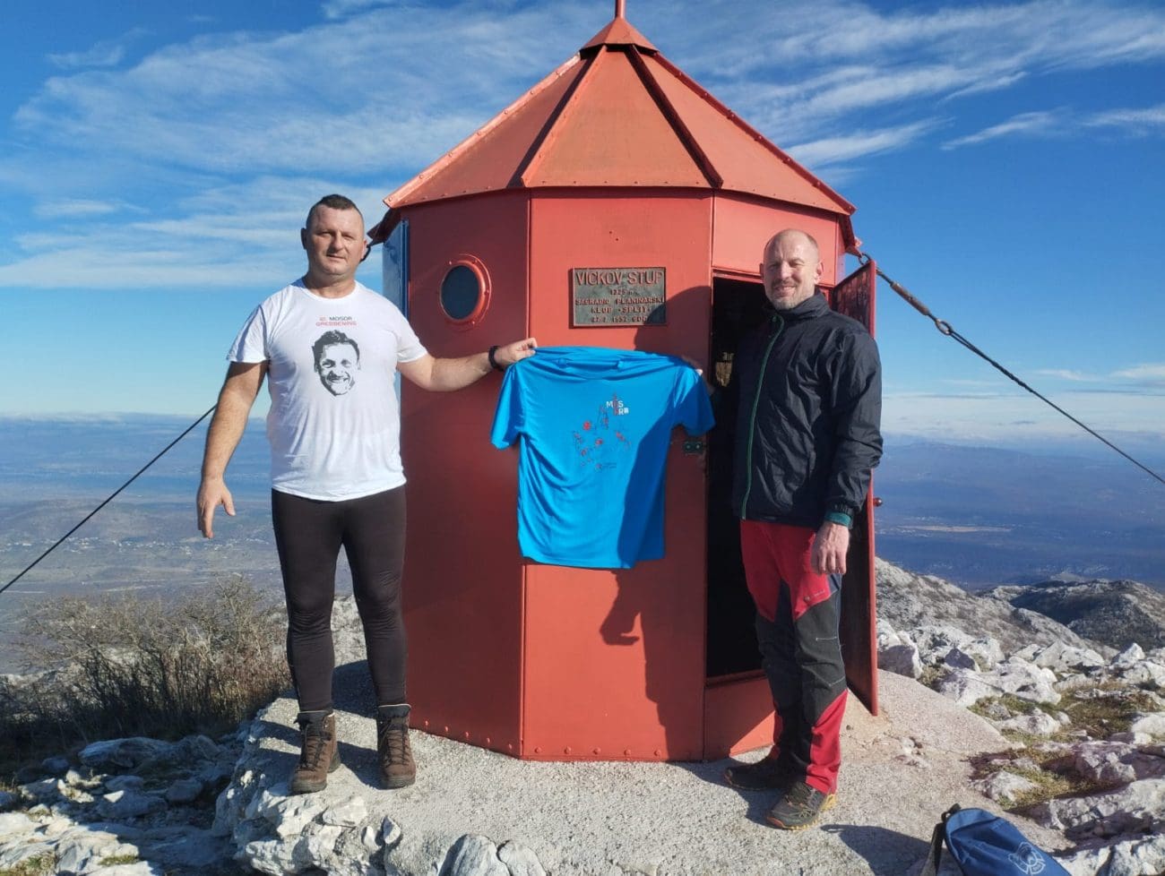 Veliki jubilej planinarskog društva Mosor obilježen je na poseban i simboličan način. Dvojica žrnovačkih planinara, dugogodišnjih članova HPD-a Mosor, popela su se na poznati mosorski greben gdje se nalazi planinarsko sklonište Vickov stup.
