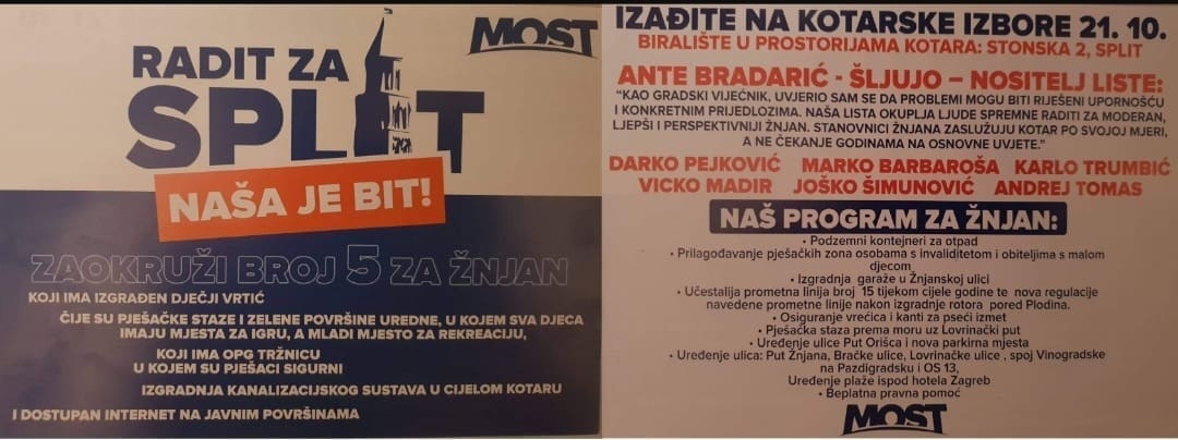 Most nezavisnih lista s najmlađom listom kojoj je prosjek 27 godina, izlazi u nedjelju 21. listopada na izbore u kotaru Žnjan.