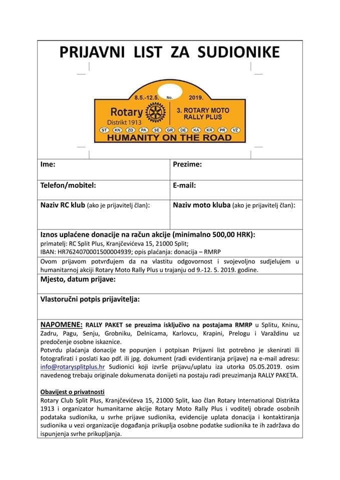 Uz Rotary Club Split Plus, u akciju su uključeni RC Kaštela, RC Zadar, RC Prelog i RC Varaždin 1181 te motoklubovi BMW Dalmacija, BMW MK Varaždin, BMW MK Karlovac, MK Vuk Samotnjak, MK Barokeri, MKMountain Riders, MK Paška Bura I IFMR Croatia bez čije pomoći akciju ne bi bilo moguće organizirati.