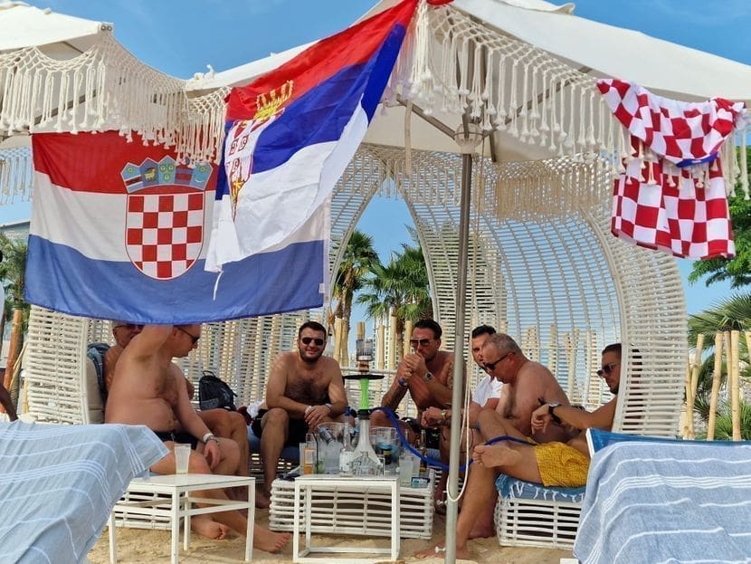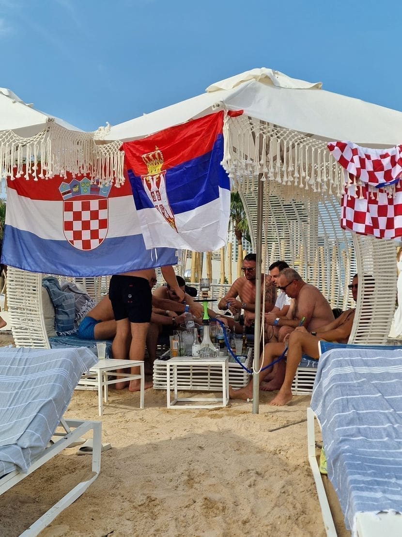 Da navijači iz Hrvatske i Srbije mogu zajedno provoditi vrijeme, dokazuju snimke nastale na plaži u Dohi, javlja Telegraf.