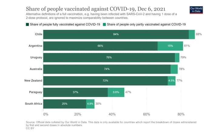 Sadašnje stanje procijepljenosti u zemljama JH na dan 5. prosinca (5. lipanj za JH) ne bi trebao omogućiti veći porast zaraženih, a niti umrlih kao u valu iz ljeta 2021. kod pojave beta soja. Južna Afrika ima sada 60% potpuno cijepljenog ukupnog stanovništva i 15% djelomično cijepljenih.