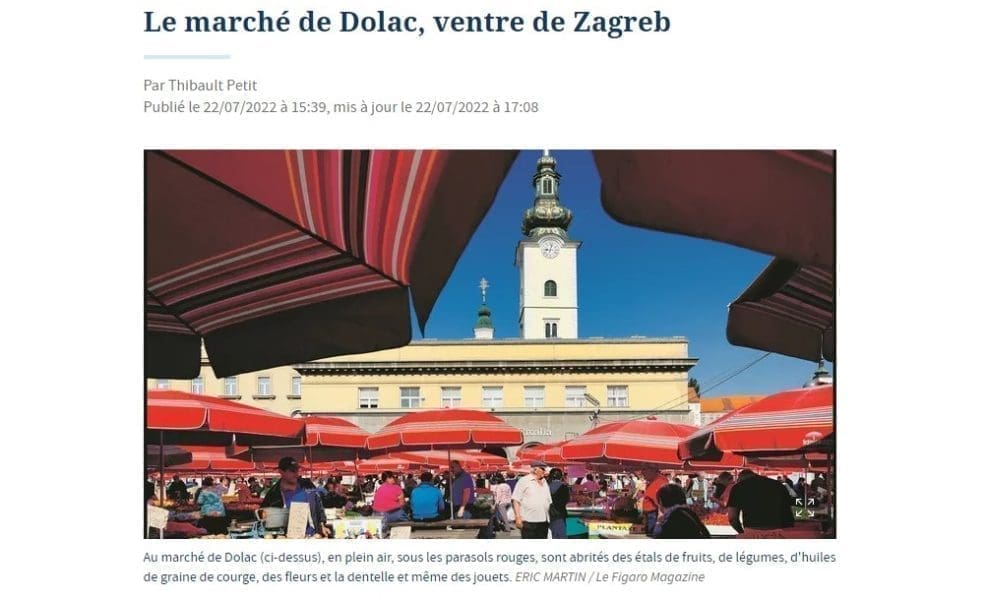 Popularnost hrvatskih destinacija dodatno potvrđuje i jedan od najčitanijih francuskih online i tiskanih časopisa Le Figaro, u kojem je objavljena reportaža o Zagrebu s osvrtom na tržnicu Dolac. Pod naslovom „Tržnica Dolac, trbuh Zagreba“, Dolac je uvršten među najljepše europske tržnice s opisom kao šarmantnog i nezaobilaznog mjesta prilikom boravka u Zagrebu za koji se ističe da je atraktivna europska metropola. I ovaj je članak rezultat studijskog putovanja novinara Thibaulta Petita u suradnji s TZ grada Zagreba. Le Figaro je vodeći online francuski portal koji bilježi gotovo 152 milijuna posjetitelja svakog mjeseca.