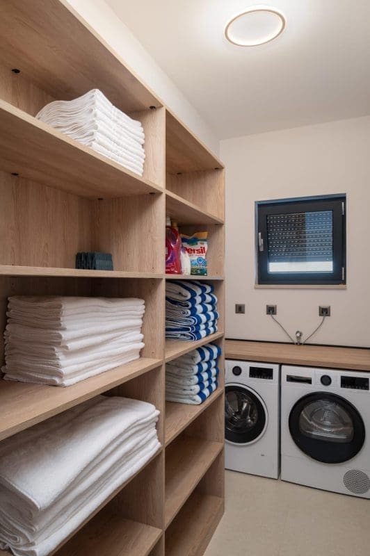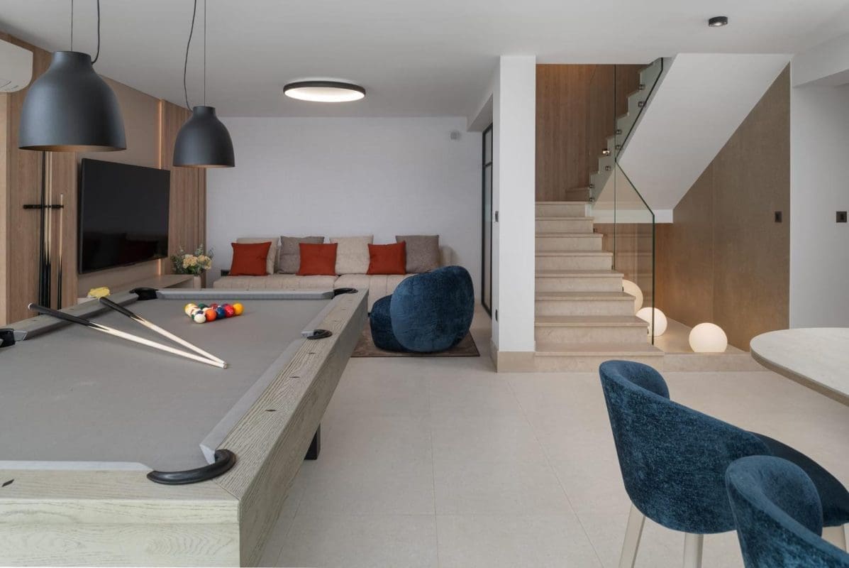 Na gornjem katu nalaze se dvije sobe s terasom i jacuzzijem, dok se u prizemlju nalazi garaža, prostor za opuštanje i rekreaciju te spa soba sa saunom i tušem.