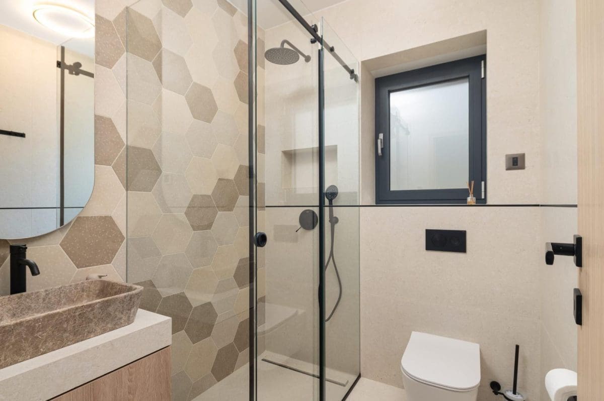Ova prekrasna kuća sastoji se od četiri spavaće sobe, pet kupaonica te dnevnog boravka i kuhinje s izlazom na prostranu terasu s infinity bazenom i panoramskim pogledom na more.