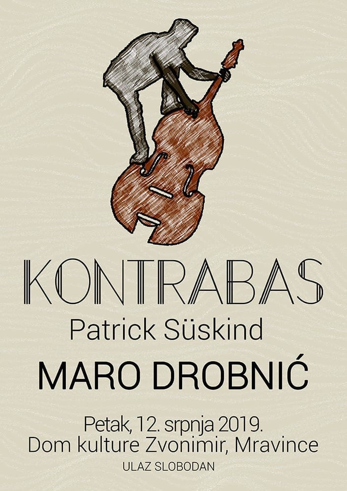 U sklopu "Mravinskog lita" - Mravince 2019. ovog petka (12. srpnja) s početkom u 21 sati održat će se predstava "Kontrabas" autora Patrika Süskinda. Predstavu izvodi akademski glumac Maro Drobnić.