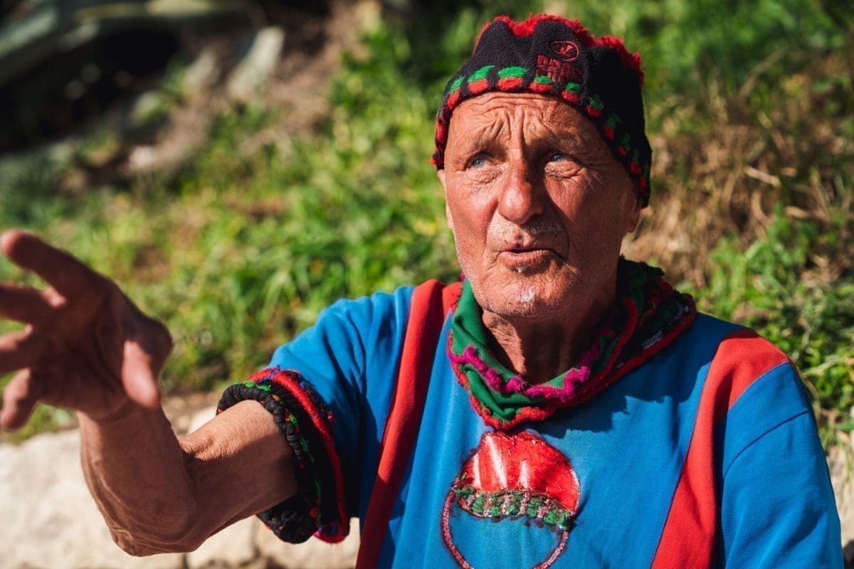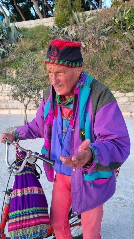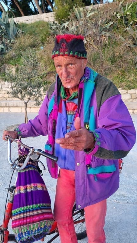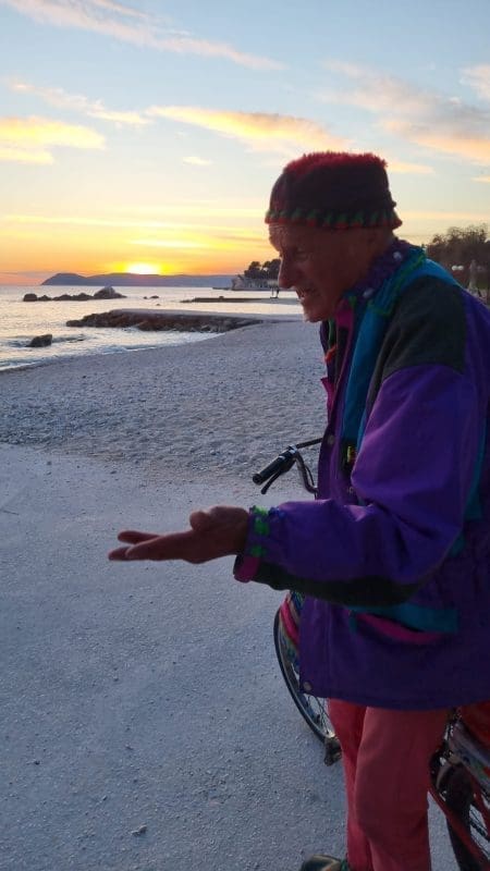 82. Ja na Kašteletu di je bila Obojena svjetlost, još je Marko Džaja drža tu butigu. On meni govori, zašto bi ti Eugene plaća tamo neki stan, a odi zimi nema nikoga i aj čuvaj tu kuću. I ja čuvam tu kuću. Ja jedno jutro, Vedrane, oko 6 i po, to ti je bija početak šestoga, ovo nije zajebancija. Volim ovu priču, neka čuju ljudi šta se dogodilo. Jedna djevojka, 50 metara ka ova vala. Ja je nisam taka. Samo sam je vidija. Znaš šta sam primijetija? Kad je ona izlazila ja sam samo primjetija kad je ona izlazila, more je bilo do kolina. Ja sam to primijetija. Vedrane, molim te, snimi ovo. Ovo nije zajebancija. Ja sam samo primijetija nju, njen izlazak. I sad ide pisma. More je bilo do kolina. Obećaj da nećeš plakat!