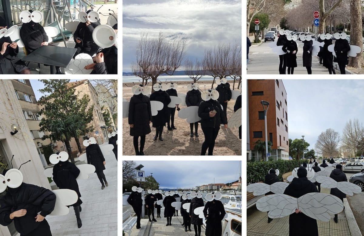 Naime, muhe su iz tvrtke Galeb 'preletjele' preko grada na Cetini. Ovaj kreativni tim iz službe Razvoja i dizajna poznatog domaćeg brenda Galeb još jednom je odlučio pokazati svoje vještine u razvoju i stvaranju proizvoda pa su tako nastali kostimi muha. Sa svjetlucavim krilima, antenama i čitavim ansamblom detalja, njihovi kostimi su bili doista impresivni.