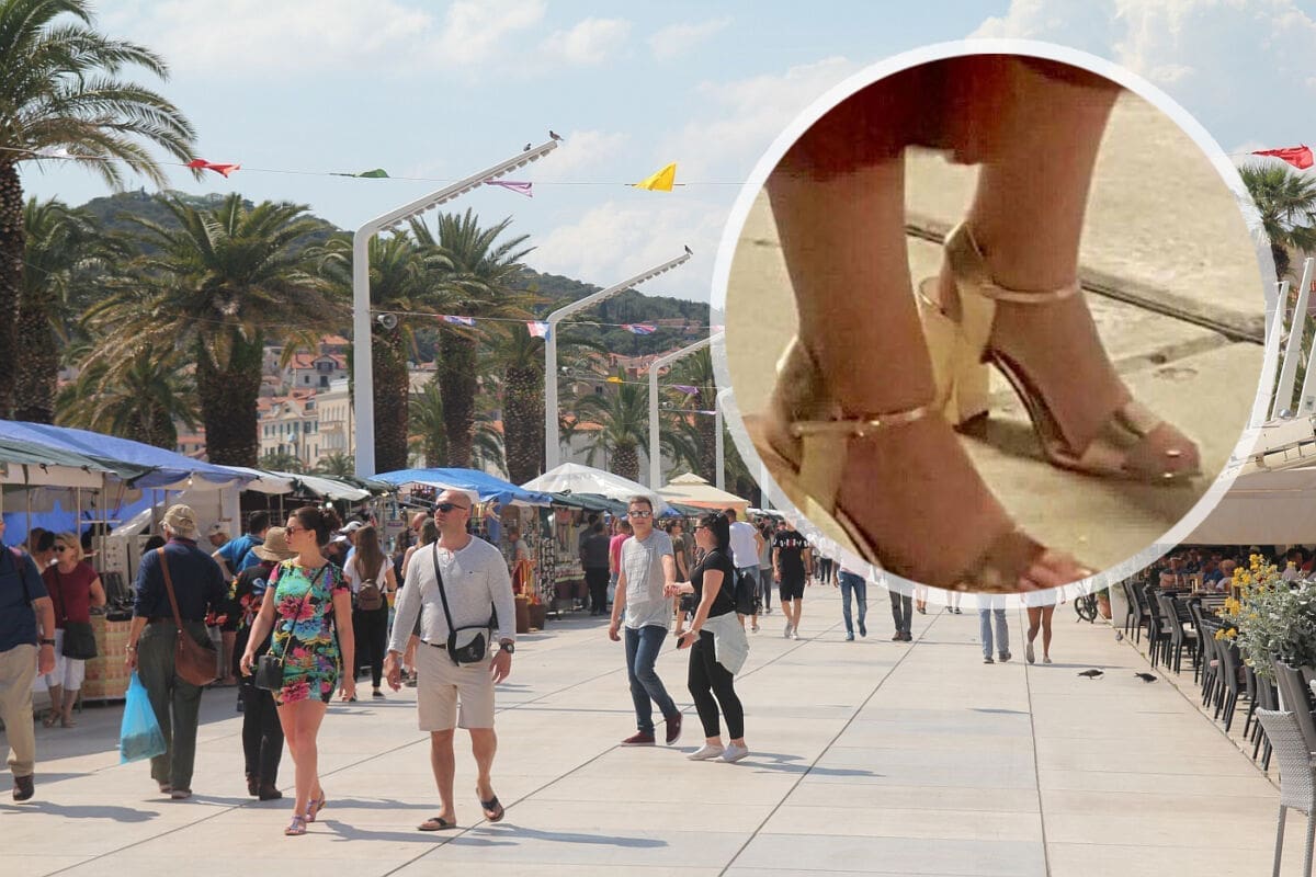 Jedna dama sredila se za izlazak na splitsku Rivu i obukla ljetne sandale. Ono što je nagnalo nekoga da fotografira njezine noge je problem s kojim se suočavaju brojne žene pri kupnji otvorene obuće. Naime, zbog visoke potpetice i nedovoljne podrške remena sandale, osobi sa slike izvirili su nožni prsti i napravili svoj đir splitskom Rivom.