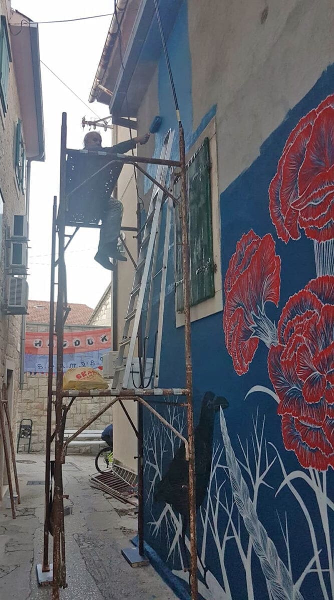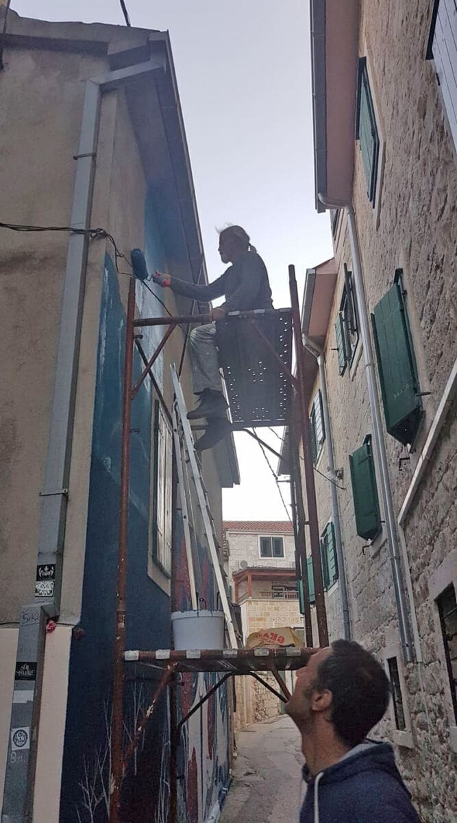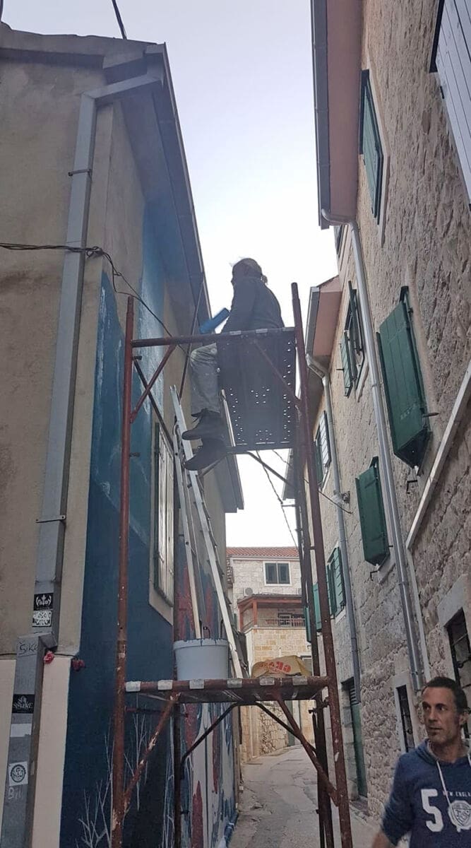 Radovi na muralu se nastavljaju i ovih dana, koriste se skele da bi se uredilo čitavo pročelje kuće.