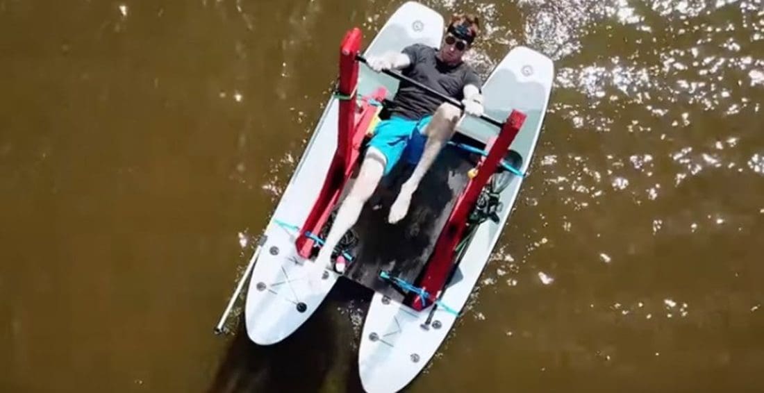 I tako je napravio svoj čamac. Ugradio je motor, pričvrstio na njega šipke za treniranje i ostavio dovoljno prostora za sklekove i čučnjeve. Iako je uživao, na kraju je priznao da su struje rijeke prejake te je bio prisiljen prekinuti svoje putovanje.