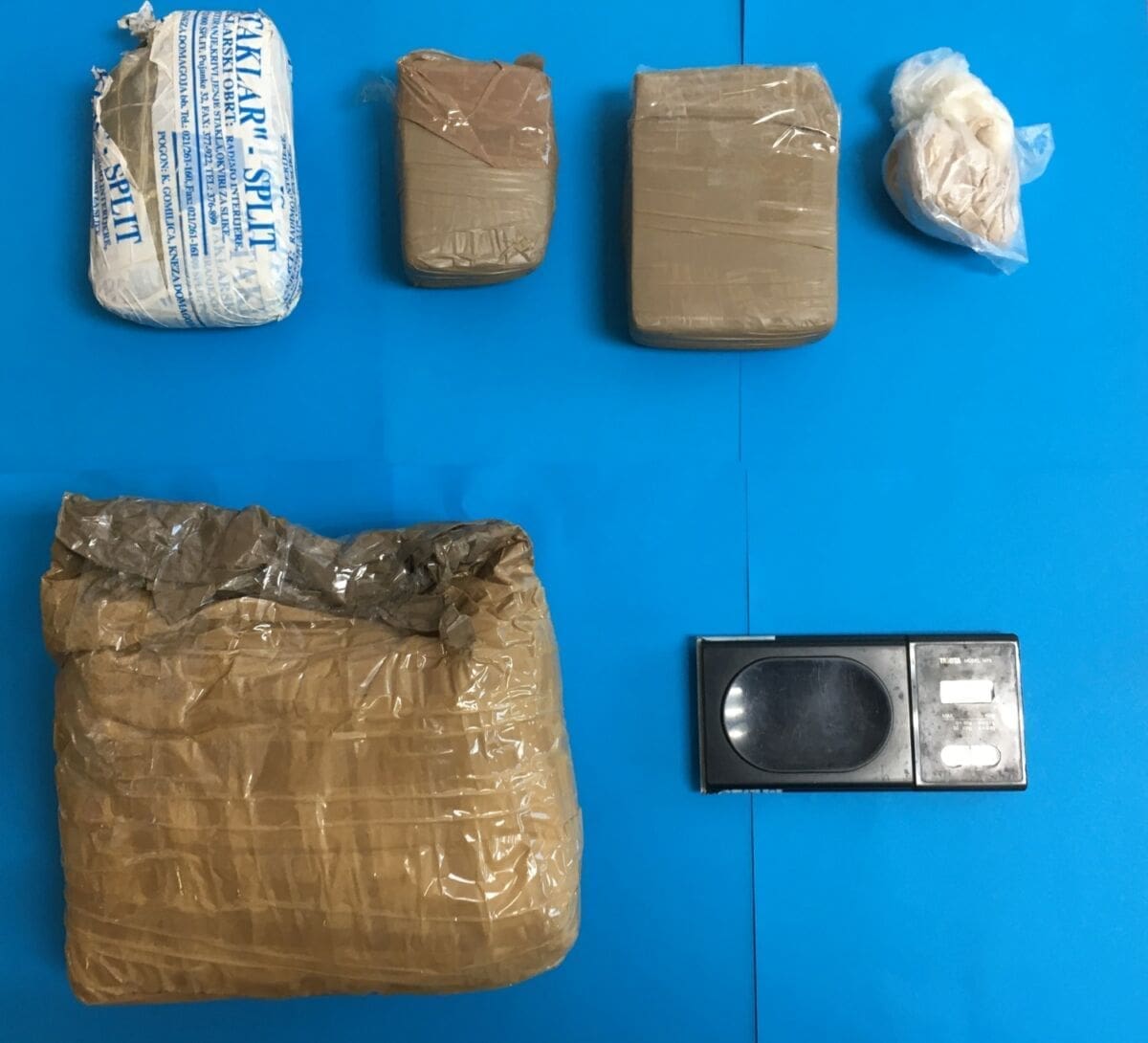 U sklopu istraživanja obavljena je pretraga doma i drugih prostorija koje koristi u Solinu te garaže Splitu. Pronađeno je 495 grama heroina, 525 grama marihuane i 707 grama grumenaste nepoznate tvari, digitalna vaga i novac.