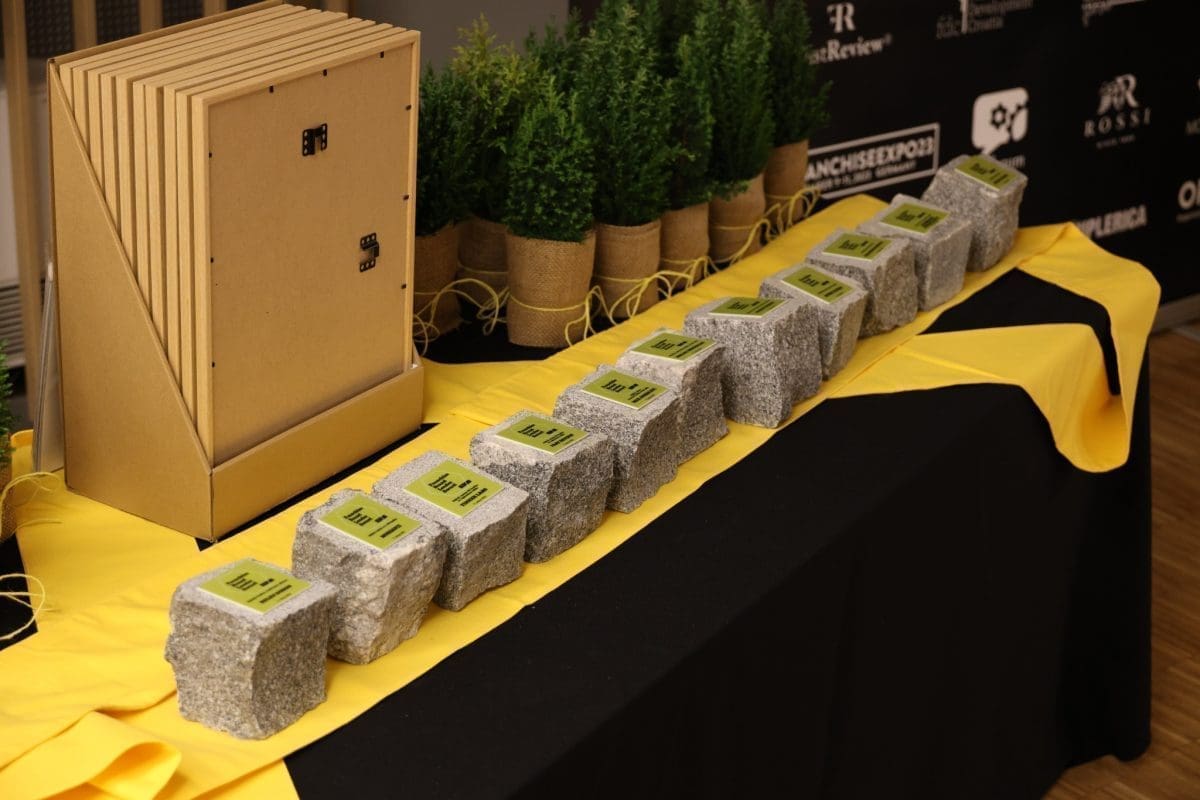 Posebno dizajnirana nagrada Franchise Brand Leader Award, u stvari je komad kamena, granitne kocke, sa svim svojim nesavršenim stranicama, ali istodobni simbol otpornosti i poduzetničke tvrdoće. Kako su se i sami dobitnici našalili, to je prava nagrada s težinom....