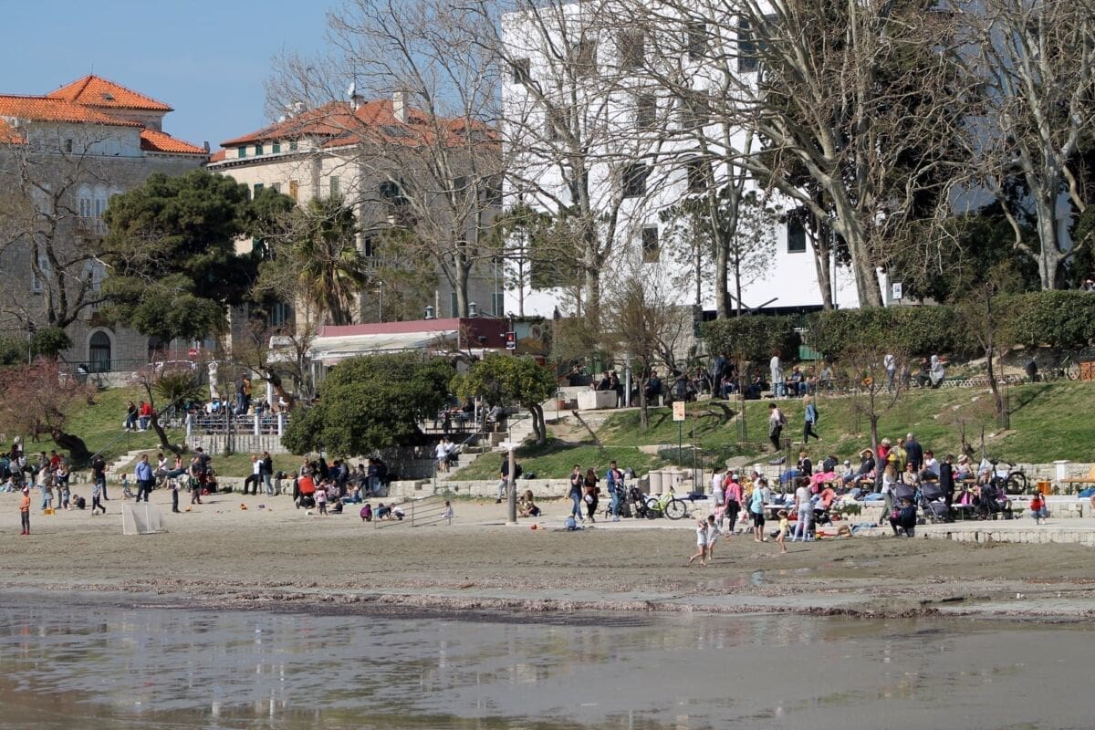 Sunčana nedjelja izmamila je Splićane na njihova omiljena okupljališta. Tako su mnogi građani, po dobrom starom običaju, nedjeljno jutro proveli na popularnoj splitskoj plaži Bačvice gdje je vladao pravi šušur.