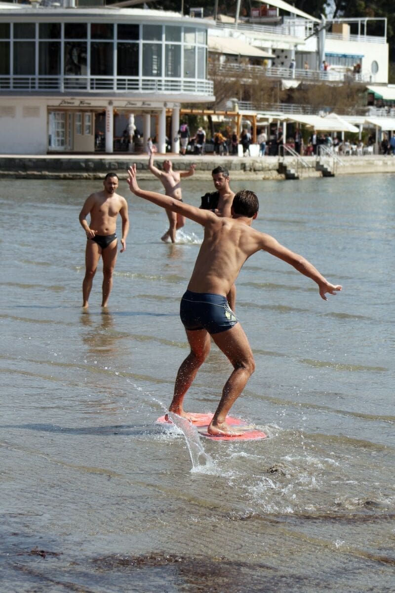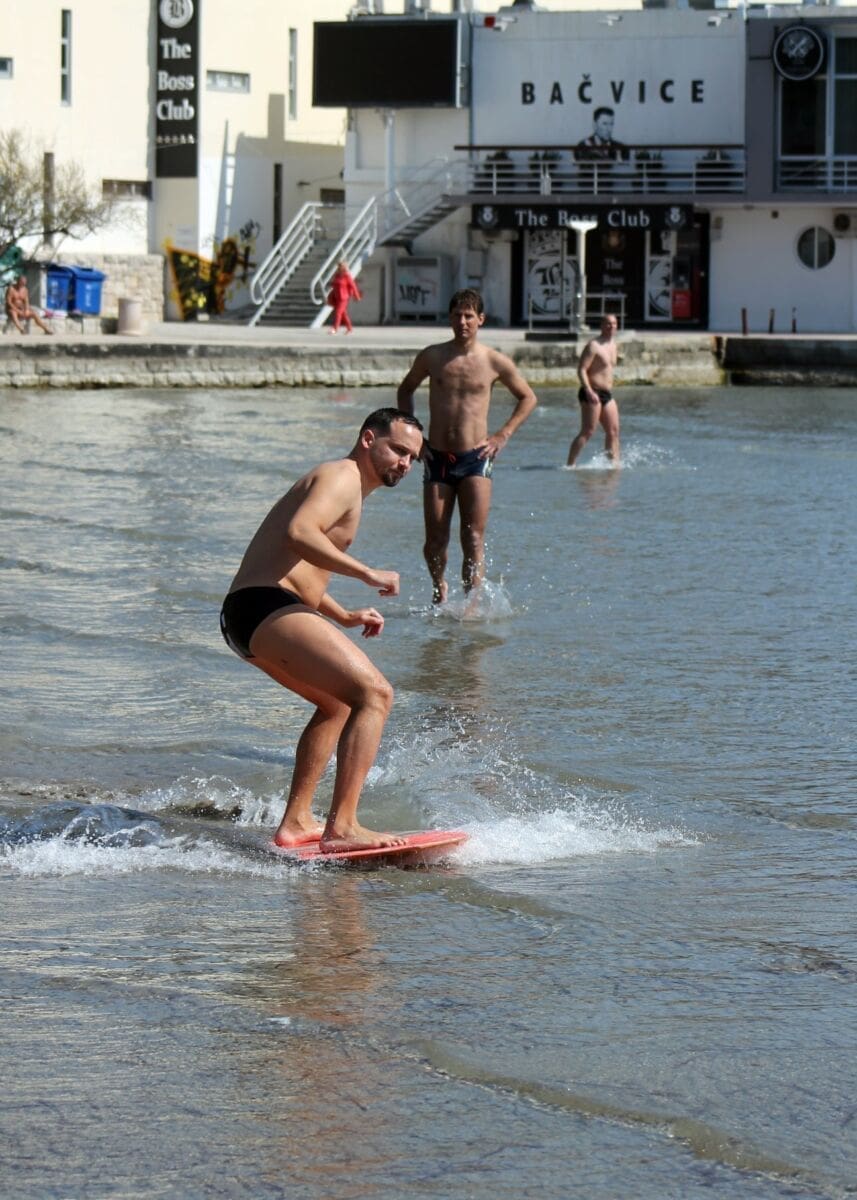 Lijepi dan su iskoristili za ćakulu, kavu i igru. Neizostavno se igrao i picigin, a oni najhrabriji su se okupali. Ipak, neku su se odlučili i za veće akrobacije, poput surfanja na dasci ili barem pokušaja surfanja.
